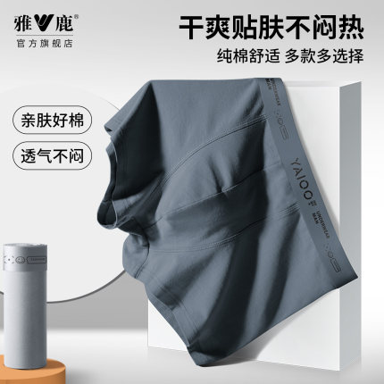 雅鹿内裤男款2025新款纯棉春夏薄款透气吸汗平角裤衩青年舒适运动
