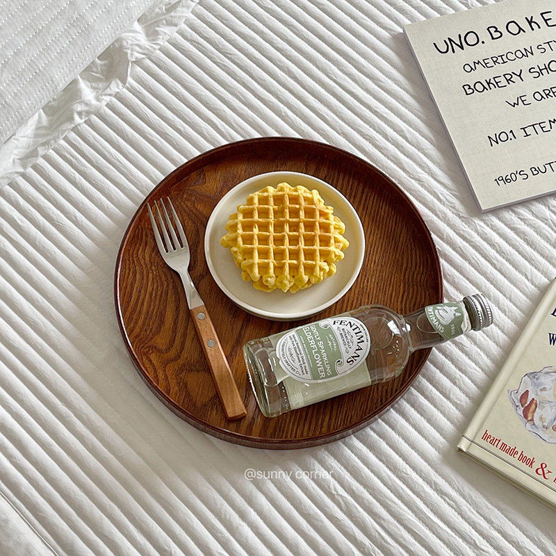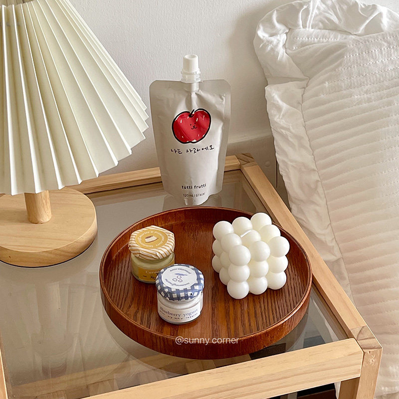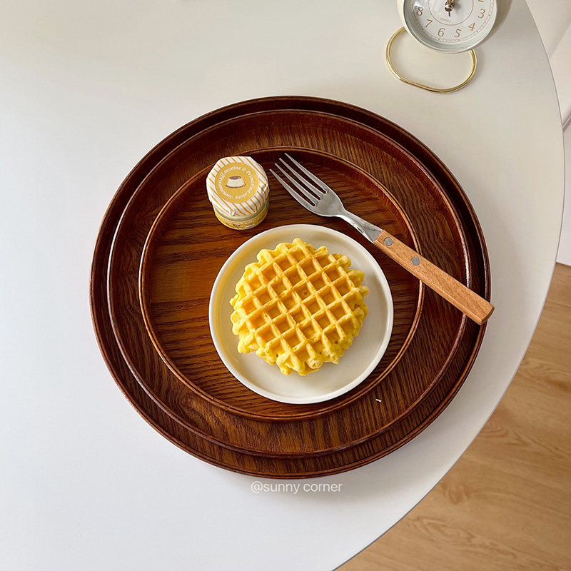 元气角落 ins风圆形木质托盘摆件桌面收纳盘水果盘一人食家用餐盘