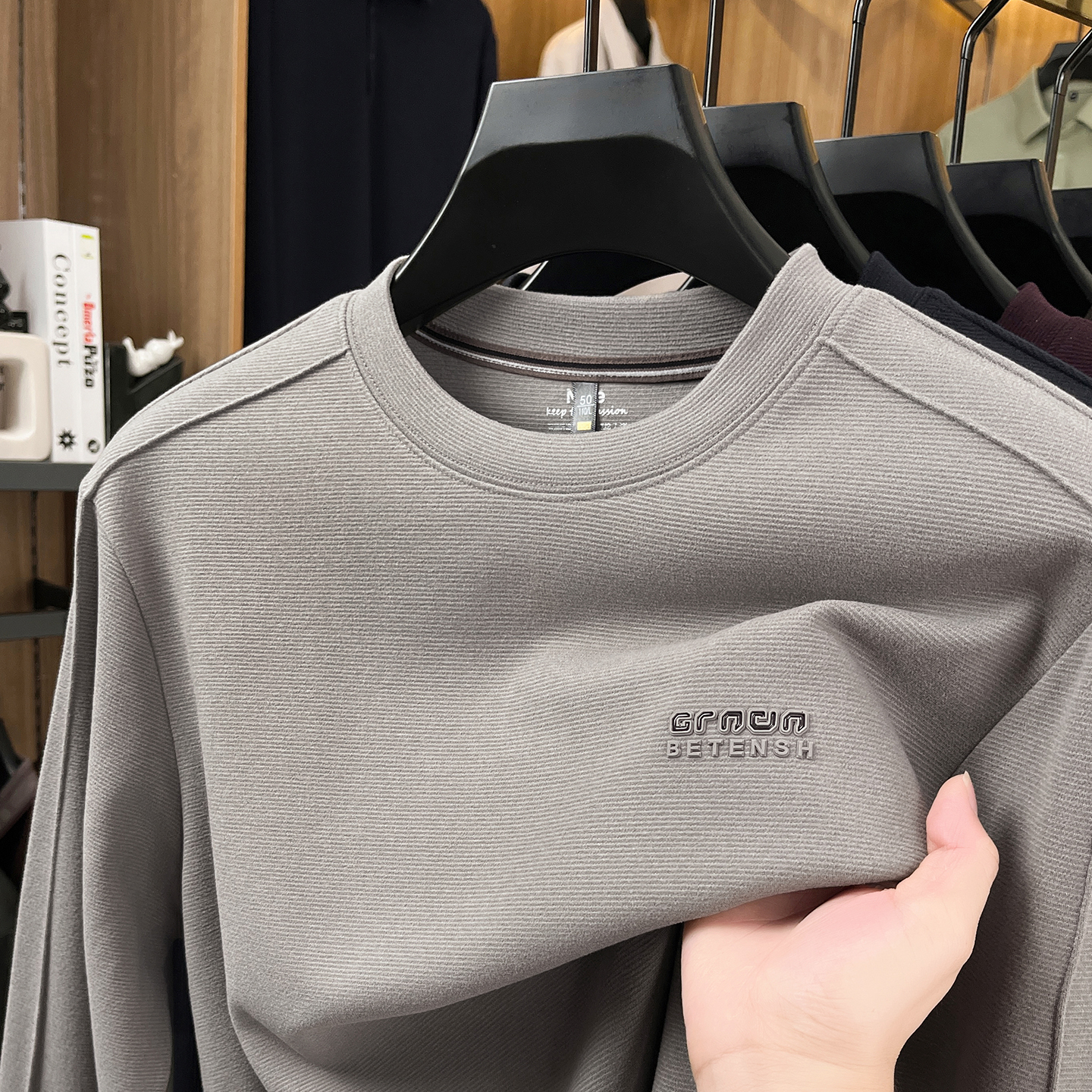 2025春秋新款圆领卫衣男士桑蚕丝中年爸爸宽松长袖t恤打底衫上衣