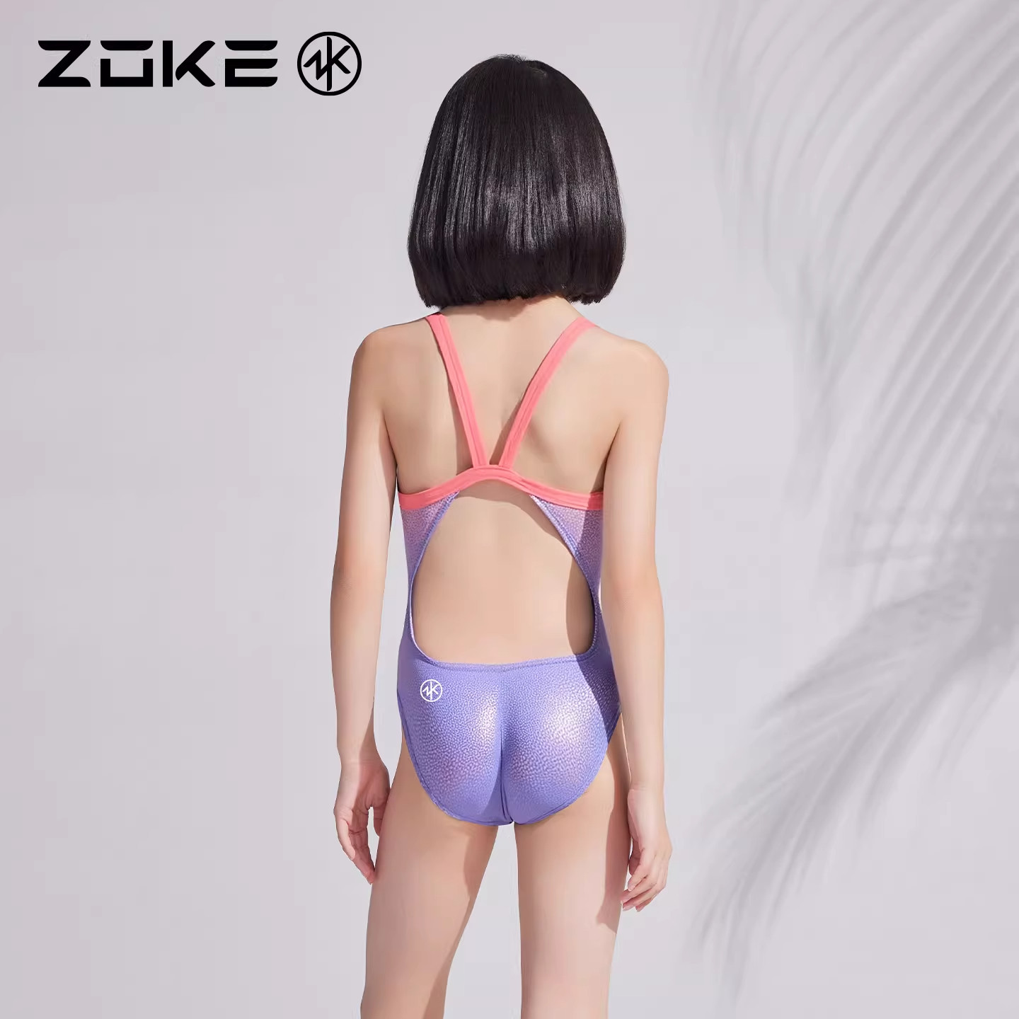 洲克儿童连体三角泳衣专业游泳训练zoke女孩速干比赛莱卡防氯泳装