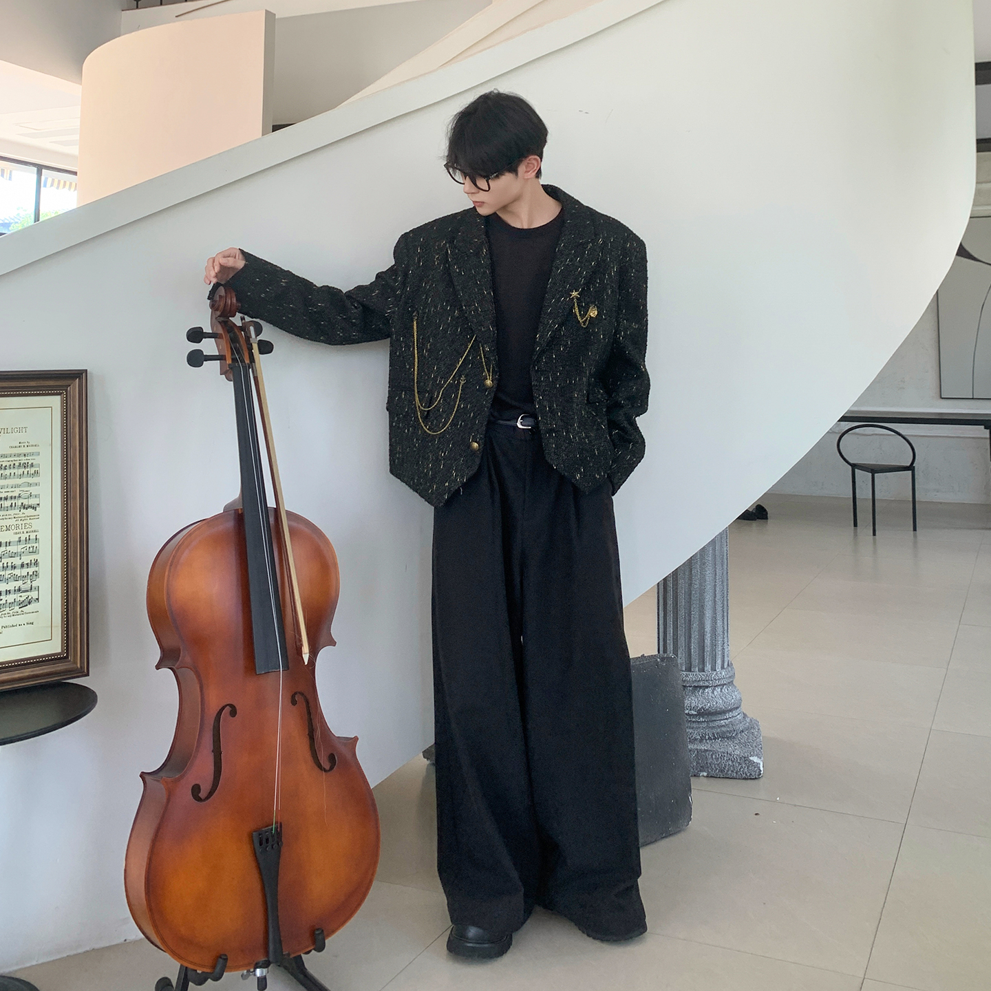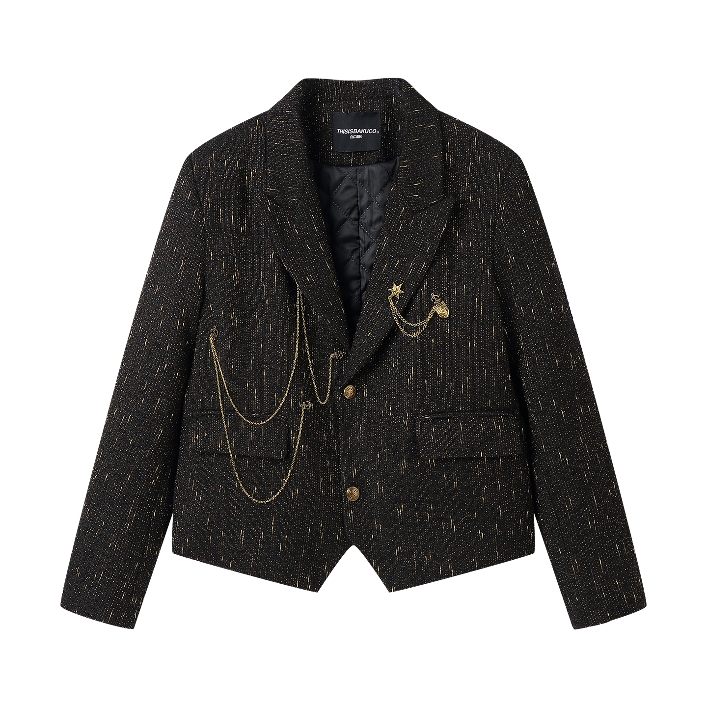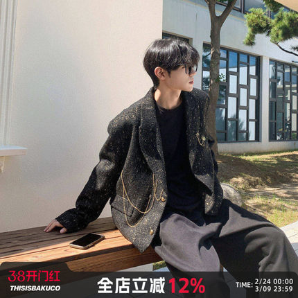 白口阳【小提琴家】满天星挂链装饰黑色单排扣小香风西装毛呢外套