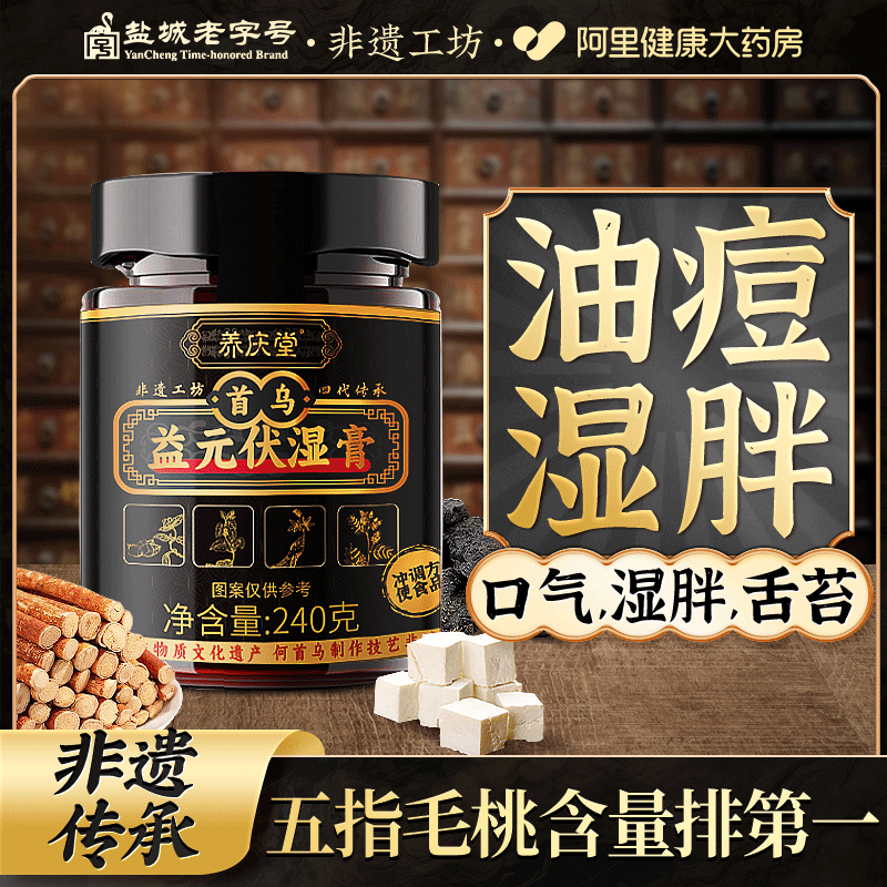 非遗五指毛桃首乌伏湿膏正品石斛茯苓三伏天人参调脾胃去祛湿气茶