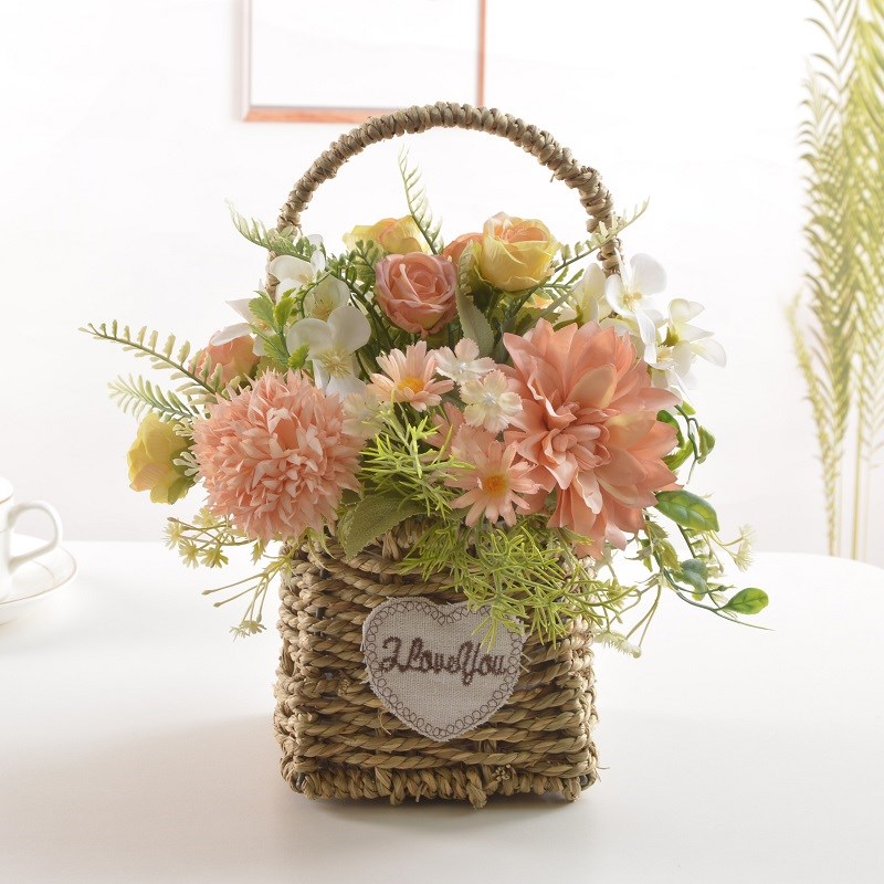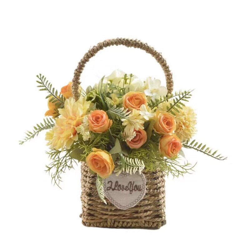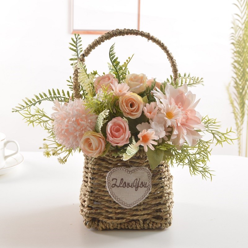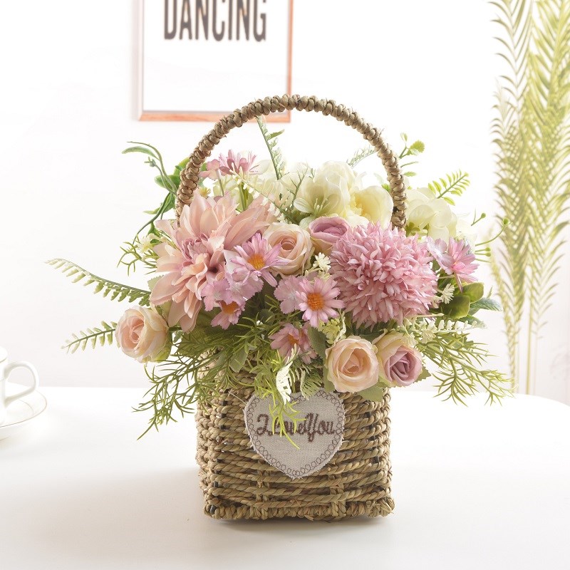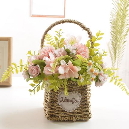 仿真花束一整套手提花篮藤编家居装饰假花桌面田园风野Z餐拍照道