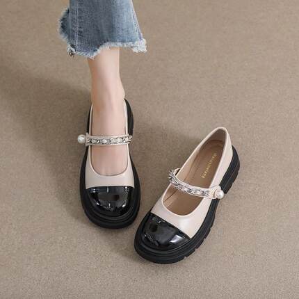 品牌鞋特价厚底玛丽珍小皮鞋女春2025新款拼色法式小香风单鞋女鞋