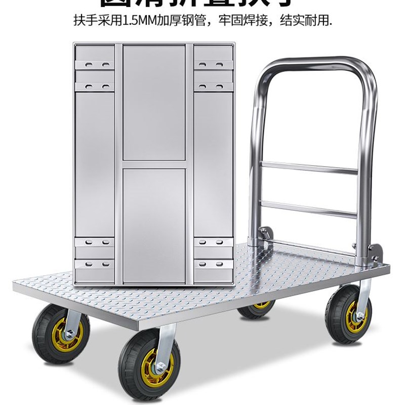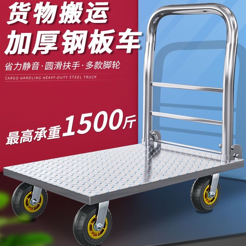 加厚钢板车d平板车推货车静音折叠手推车L搬运车拉货车四轮拖车便