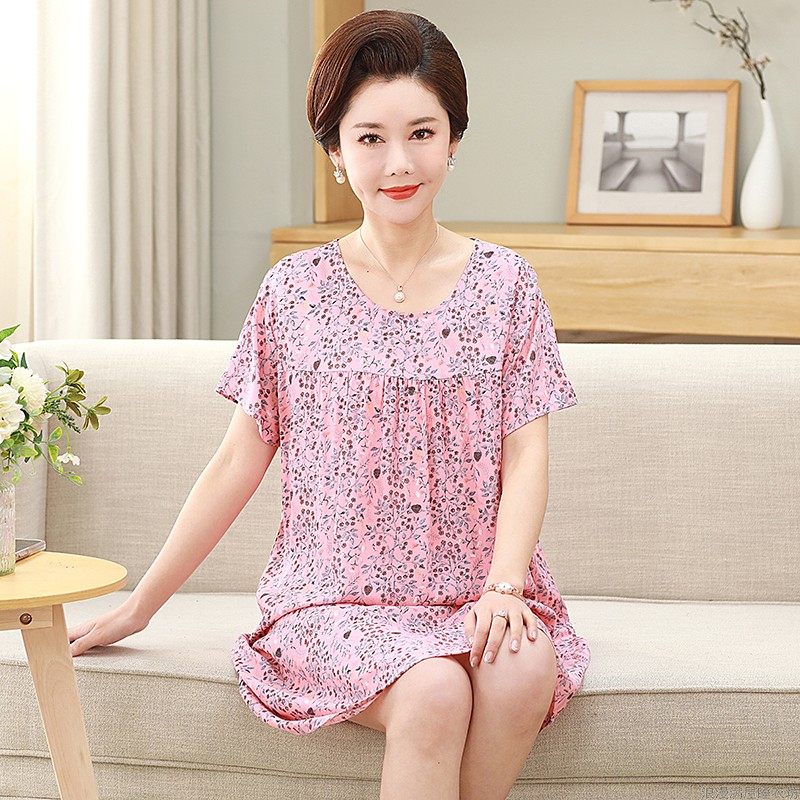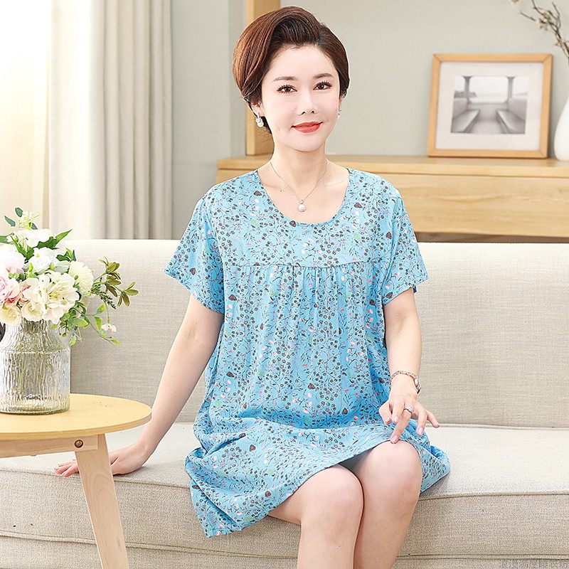 中老年睡衣女夏款纯棉绸妈妈睡裙女夏季加肥大码家居服薄款连衣裙