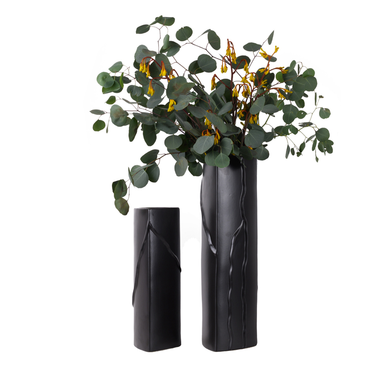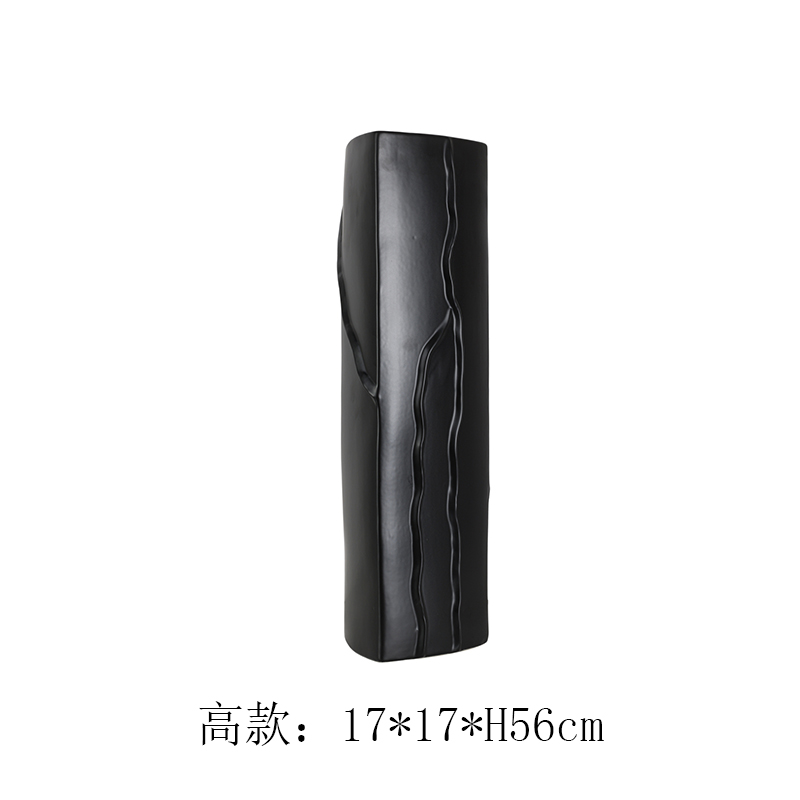 现代简约家居几何黑色陶瓷直身花瓶摆件样板房酒店摆场极简工艺品