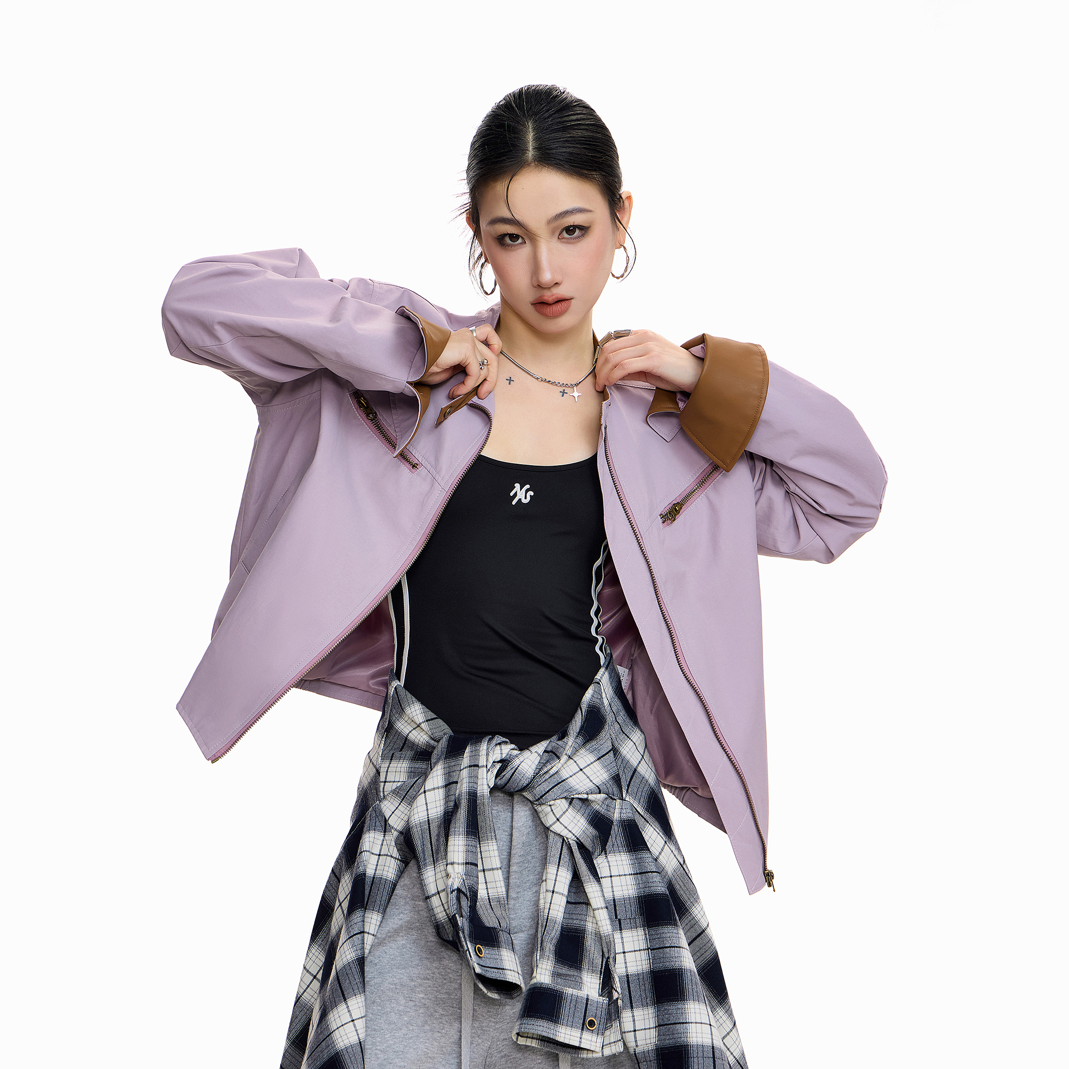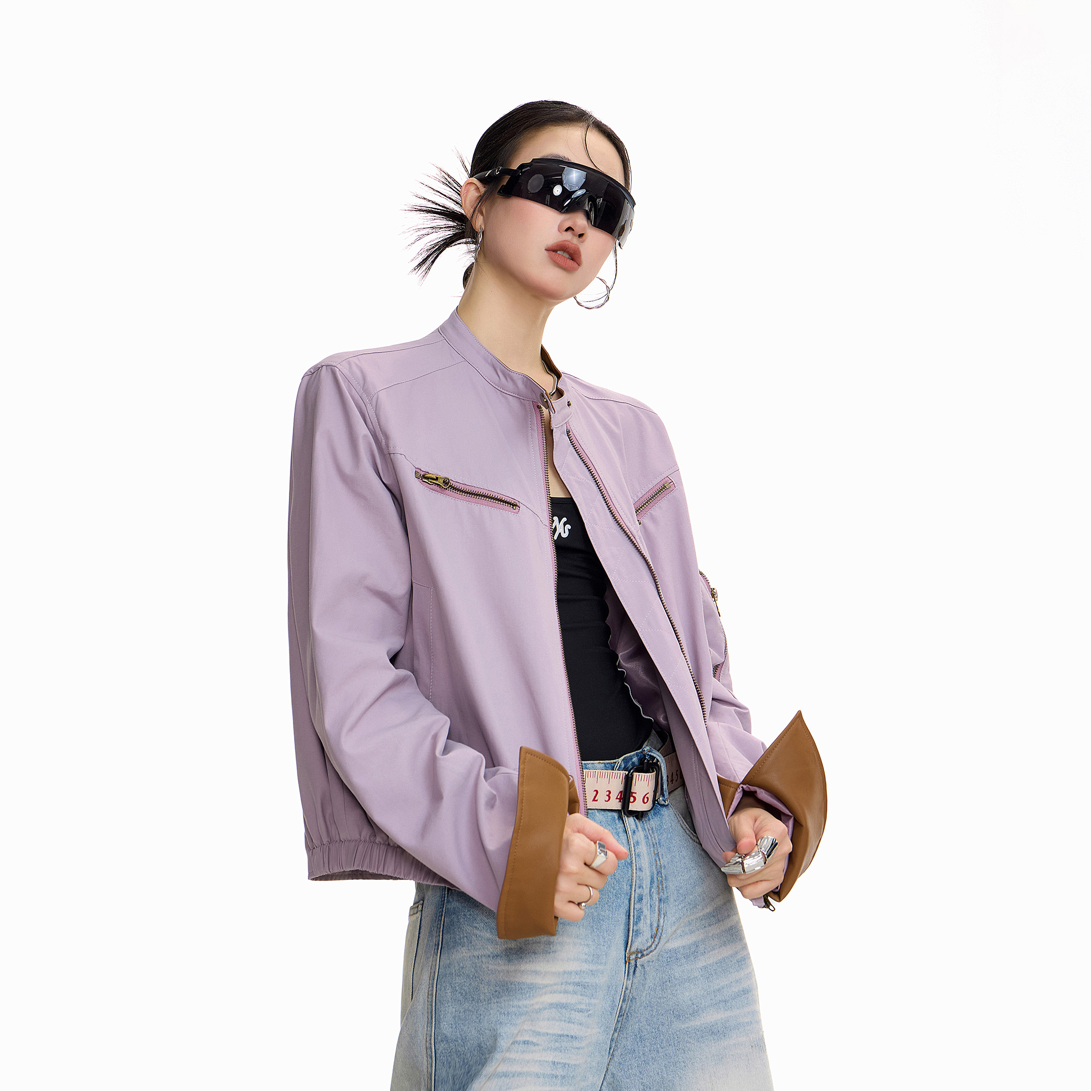 ICH MODE 美式短款紫色外套女秋冬2025新款宽松流行小衫夹克上衣
