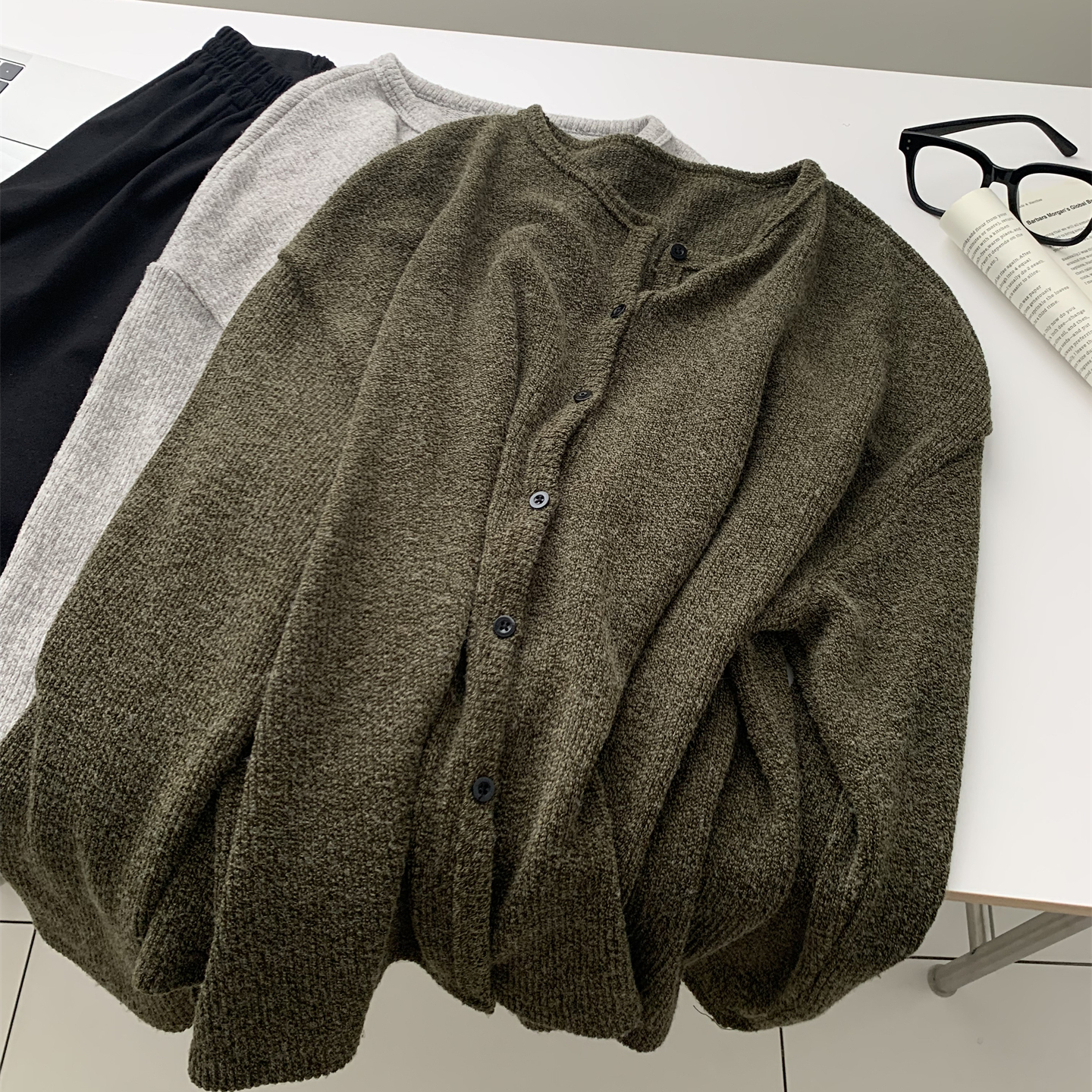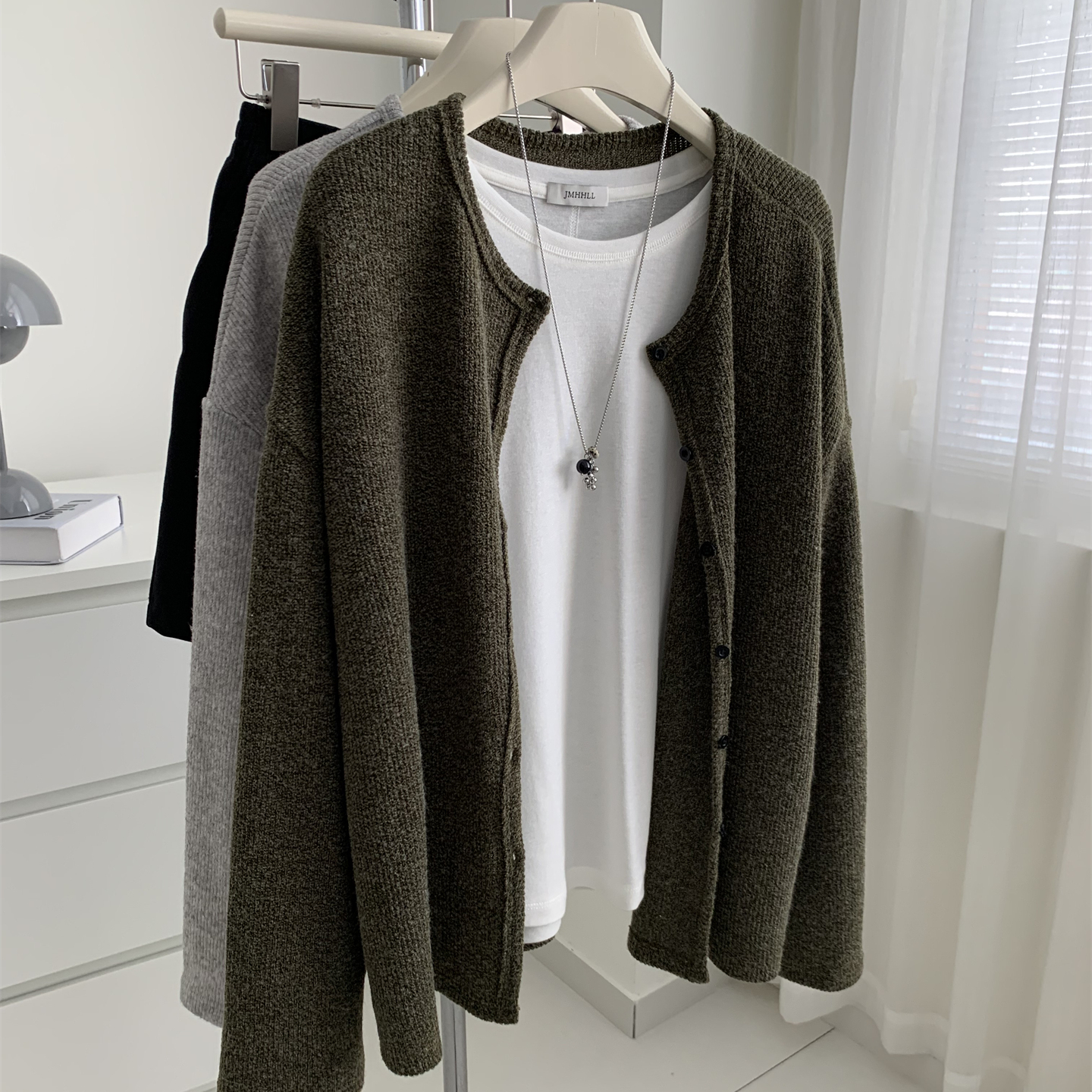 慵懒韩版花纱圆领针织小开衫女垂感百搭显瘦圆领纽扣外套秋季上衣