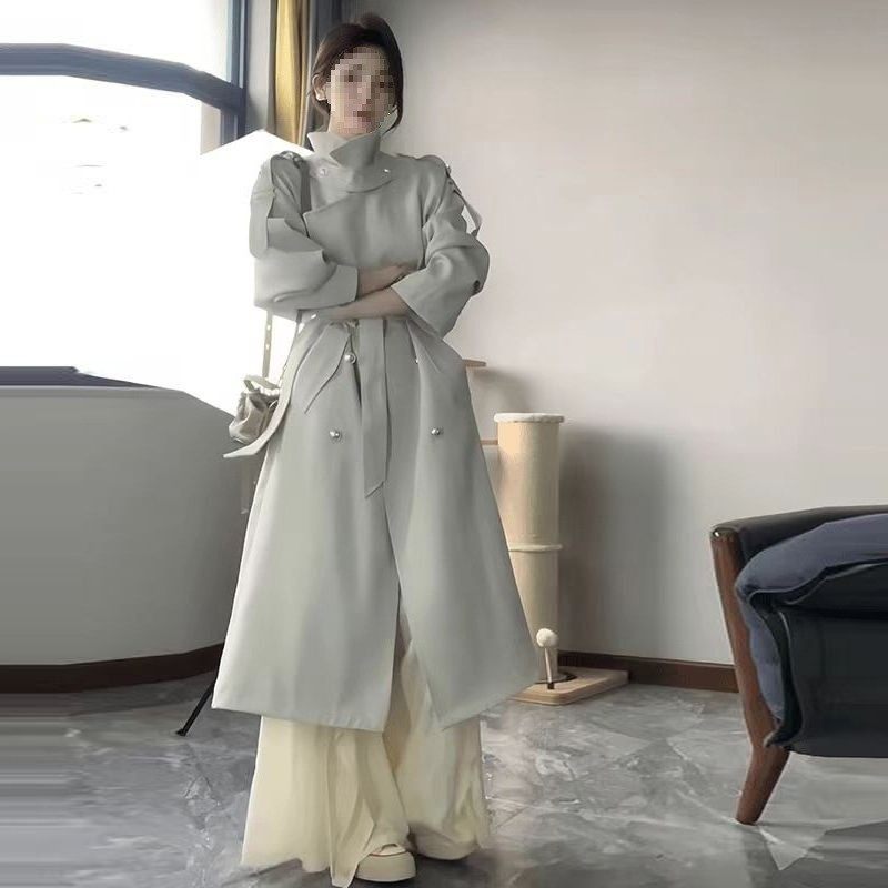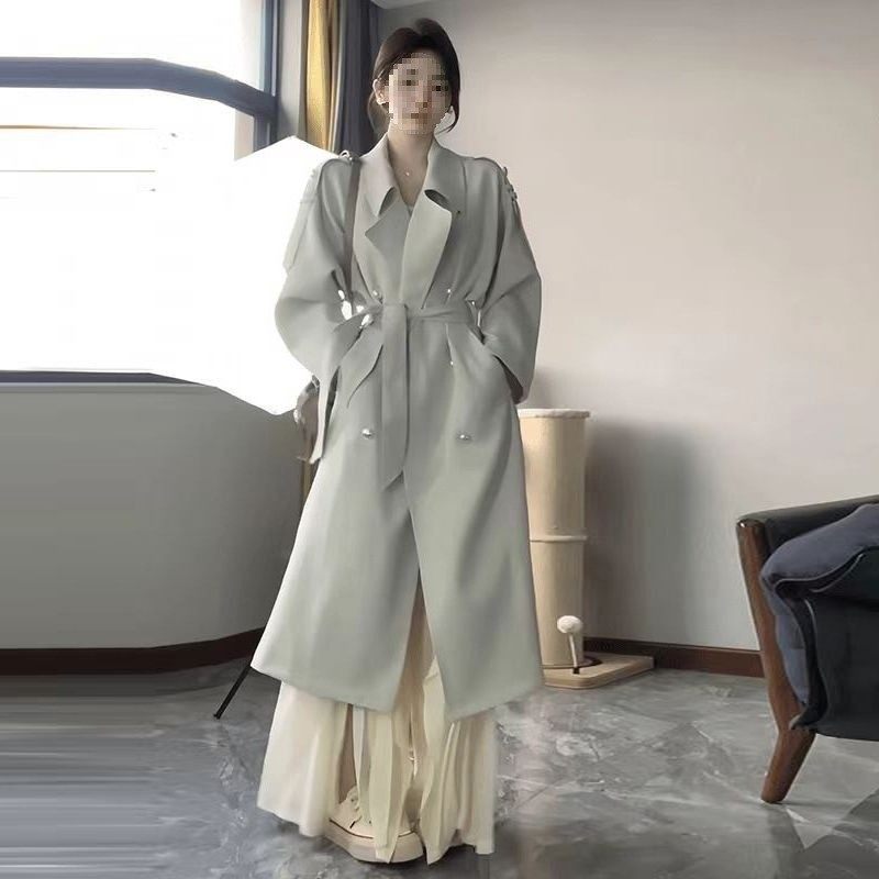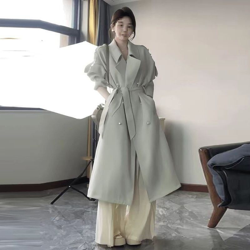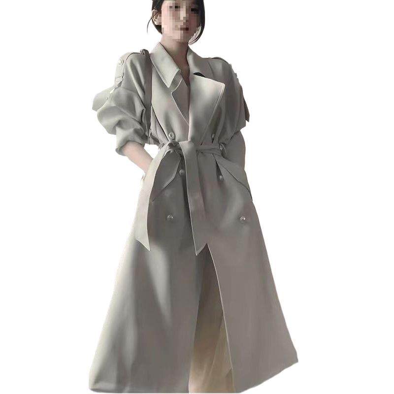 2025春秋中长款过膝英伦风衣外套女上档次白色翻领休闲小个子大衣