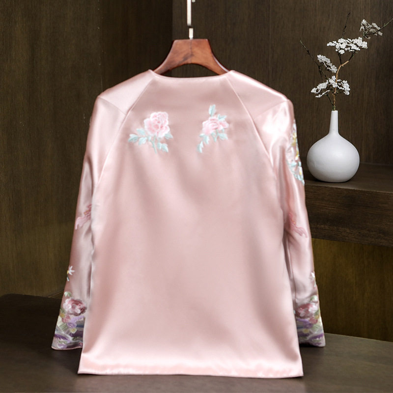 时尚新中式上衣2025春秋复古国风醋酸刺绣唐装外套民族风太太服女