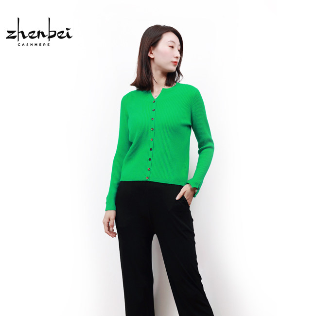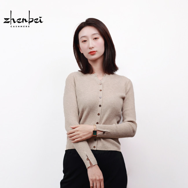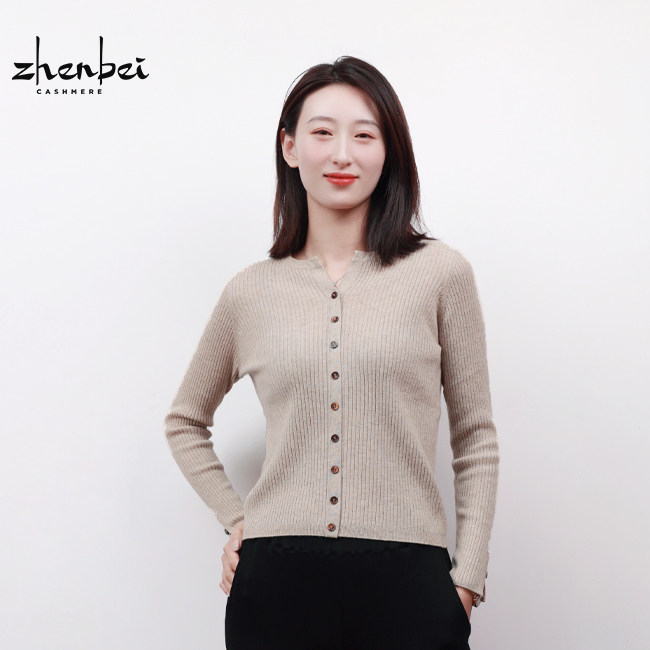 ZB/珍贝秋冬新款专柜商场同款高支纱圆V领抽条女衫时尚百搭/55766