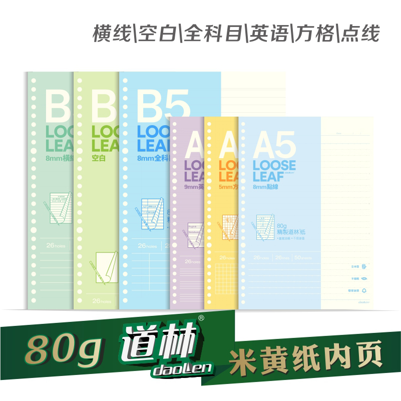 道林daolen活页本b5/a5笔记本文具学生记事本子简约加厚网格手账