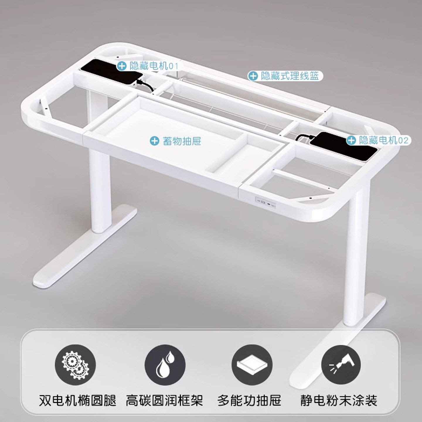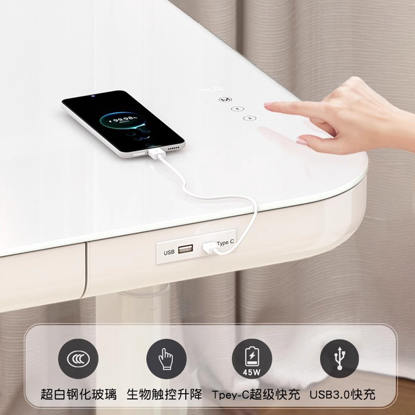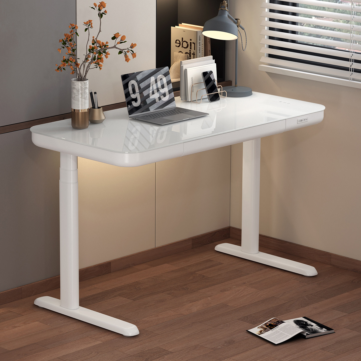 Koble弧光电动升降桌白色电脑桌钢化玻璃书桌智能办公桌家用桌子