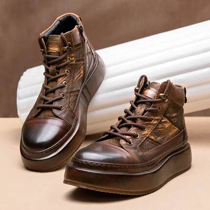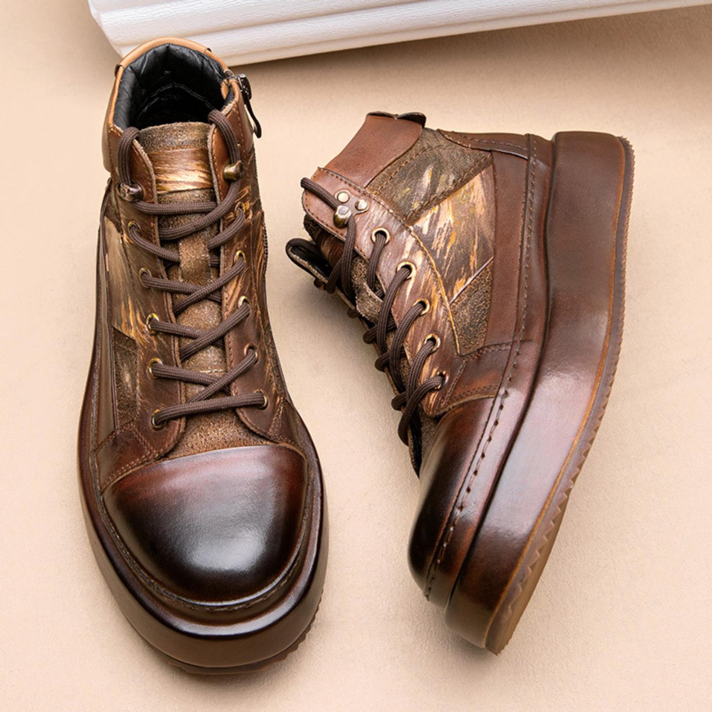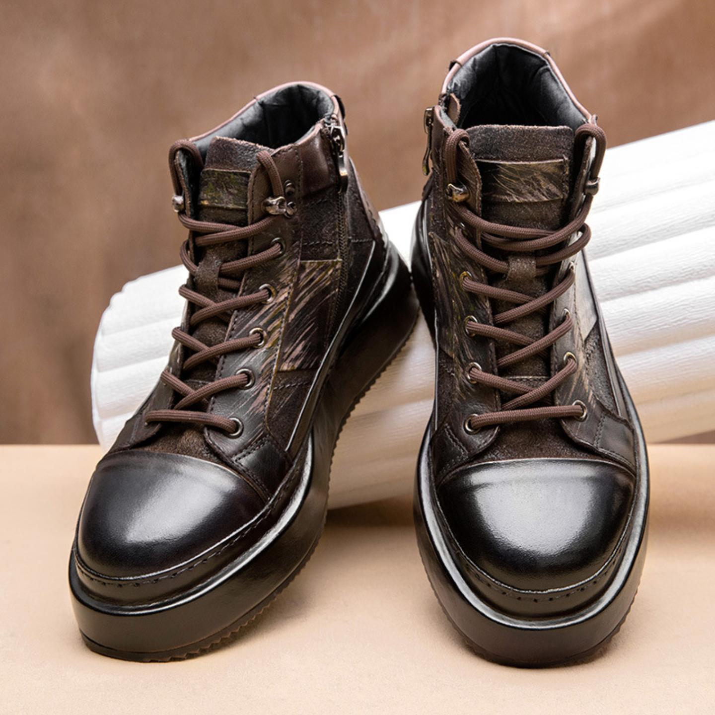 普洛克正品真皮板鞋百搭马丁靴男高帮休闲皮鞋秋冬英伦复古工装靴