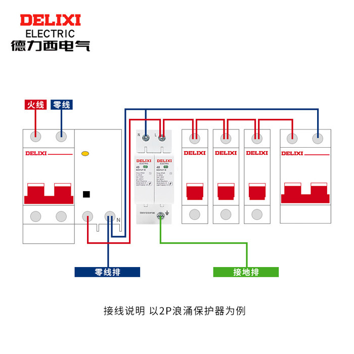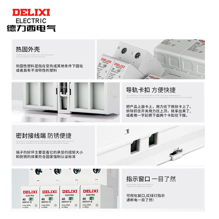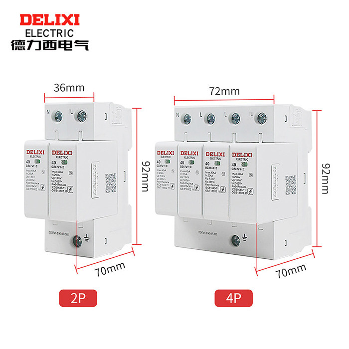德力西DZ47SY浪涌防雷击保护器2P家用220V避雷器40KA65KA三相380V
