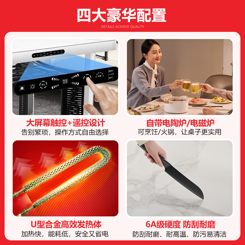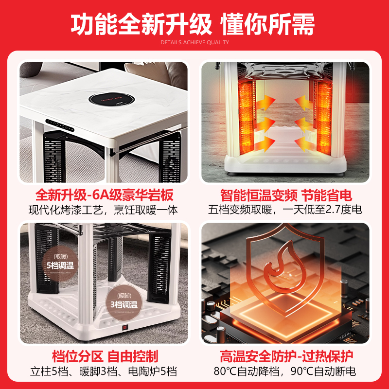 长虹取暖桌电暖桌家用正方形电烤桌一体烤火炉电暖炉新款烤火桌子