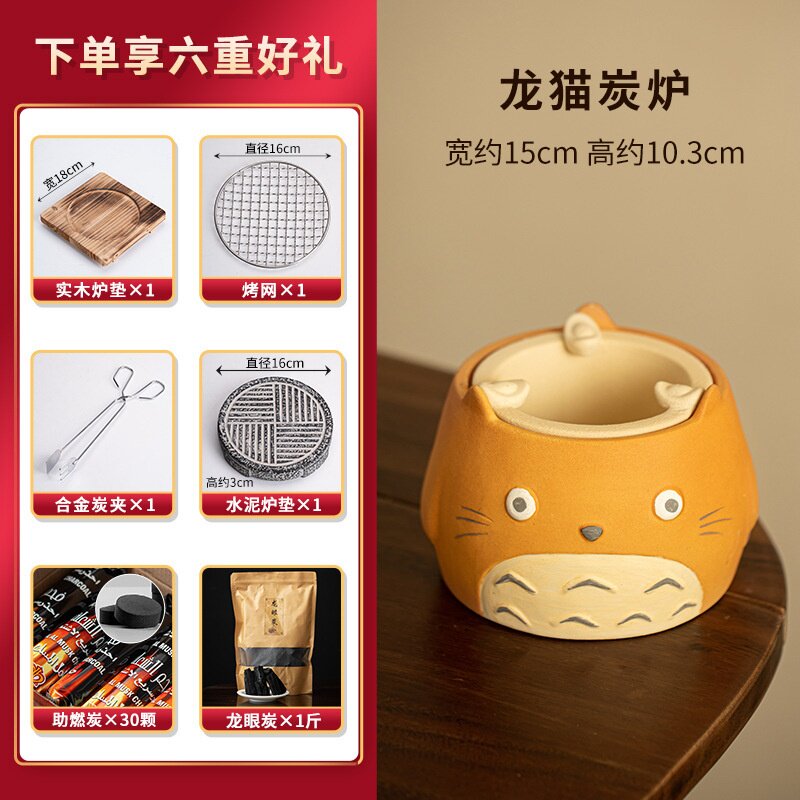 龙猫围炉煮茶家用室内碳炉茶炉粗陶明火烧烤煮茶泡茶器厂家