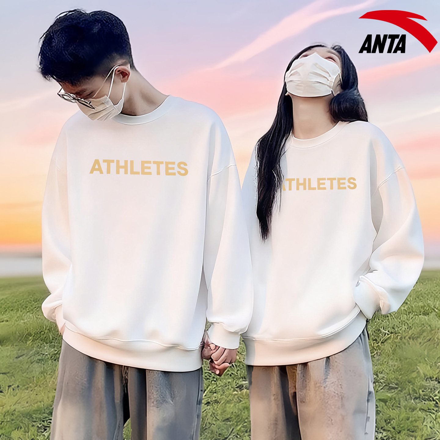 安踏白色卫衣男女款宽松大码中性