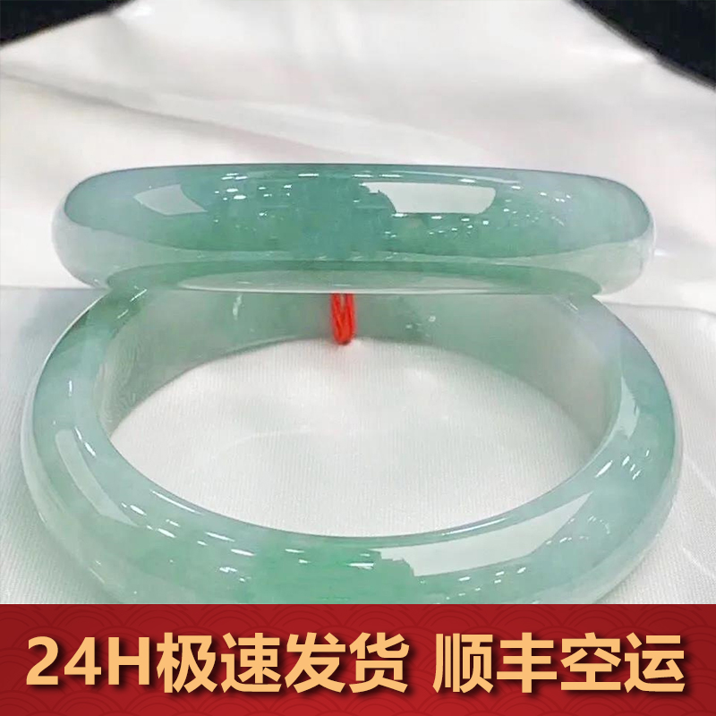 【顺丰空运】缅甸真玉手镯翡翠少女款浅绿飘花母亲节送礼