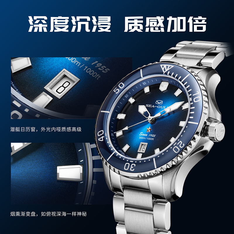 正品海鸥手表男士潜水防水300米夜光全自动机械表男表男款Pro1210