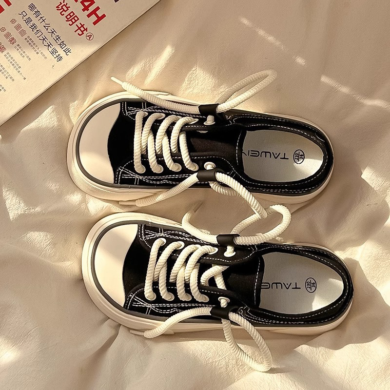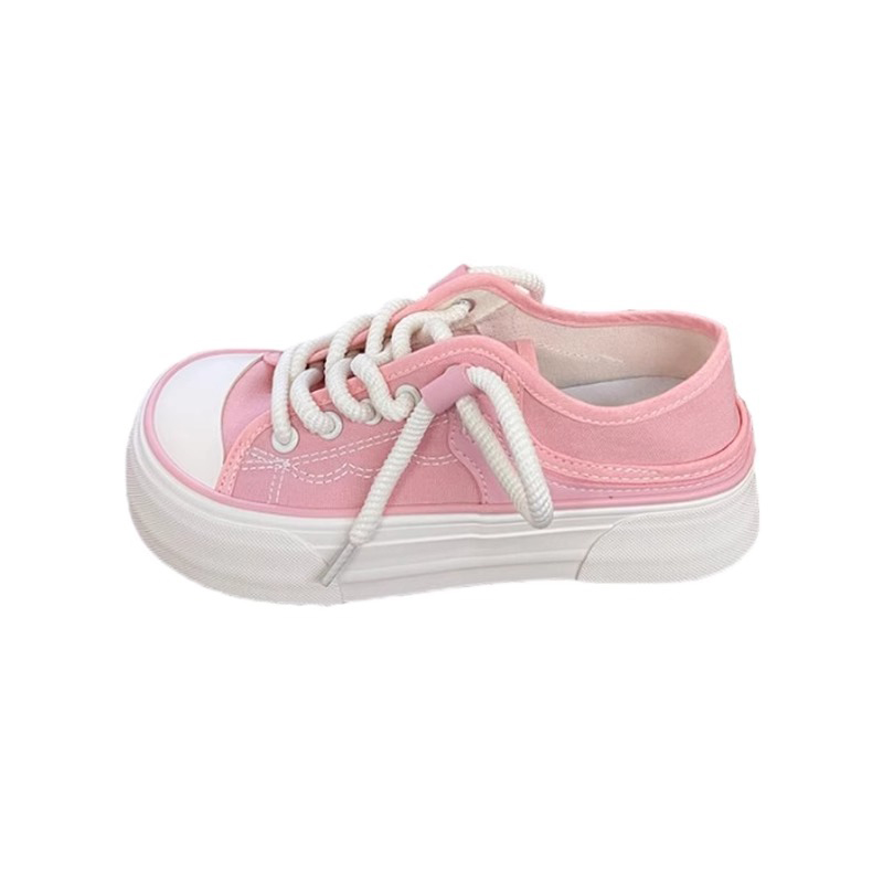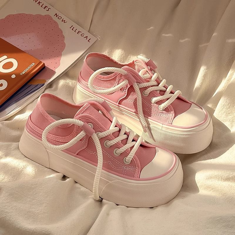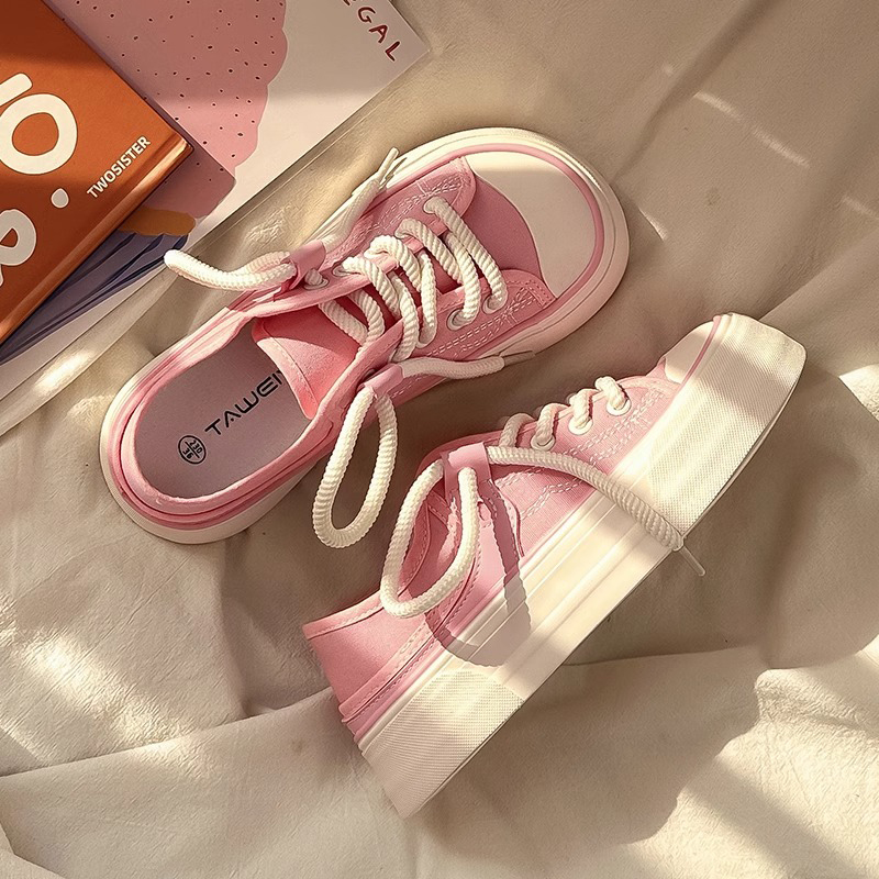 优妮蒂可爱樱花粉帆布鞋女厚底2025春季新款一脚蹬鞋子女小众板鞋