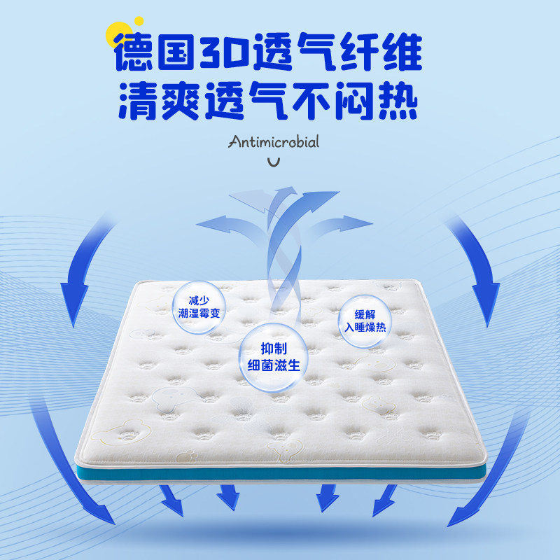 爱舒儿童专用偏硬护脊透气床垫乳胶榻榻米上下铺抑菌卡通薄垫小熊