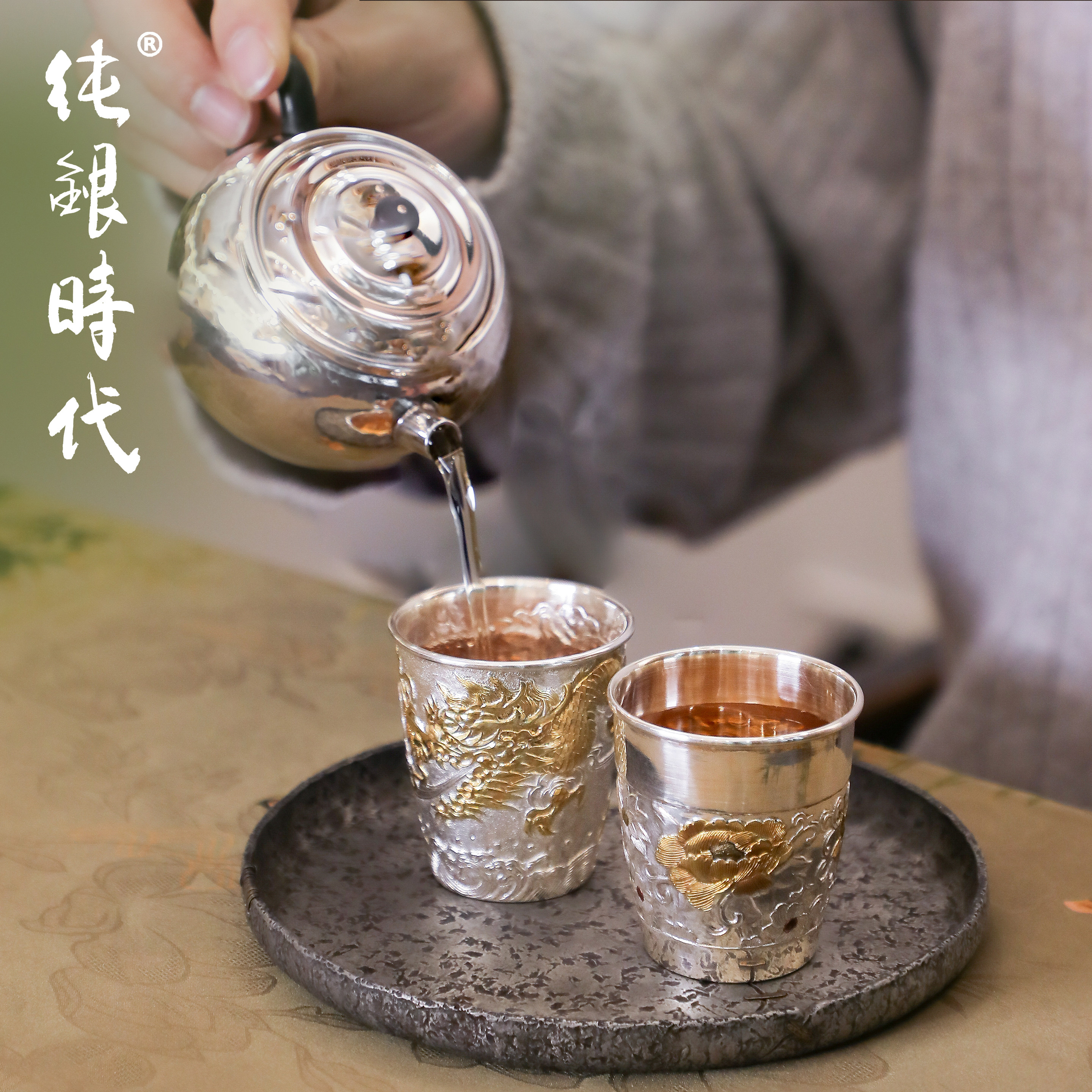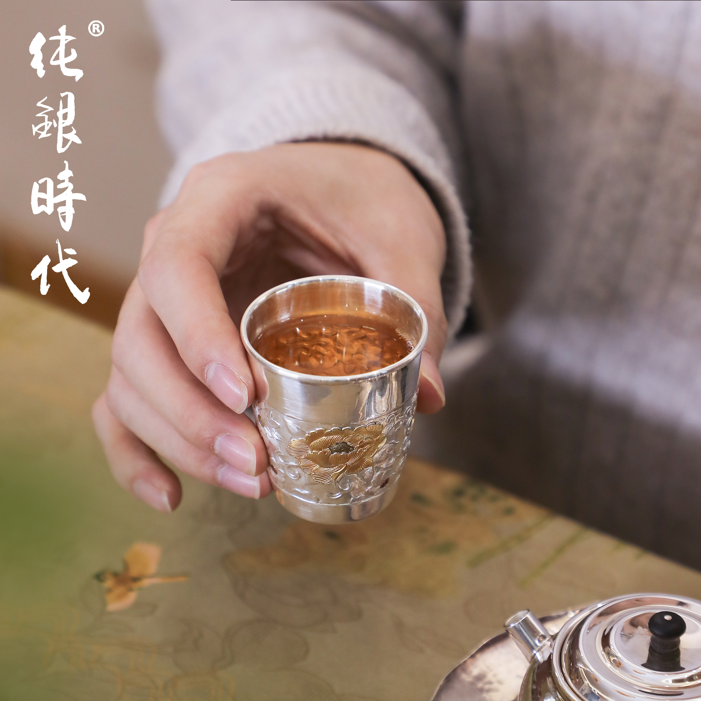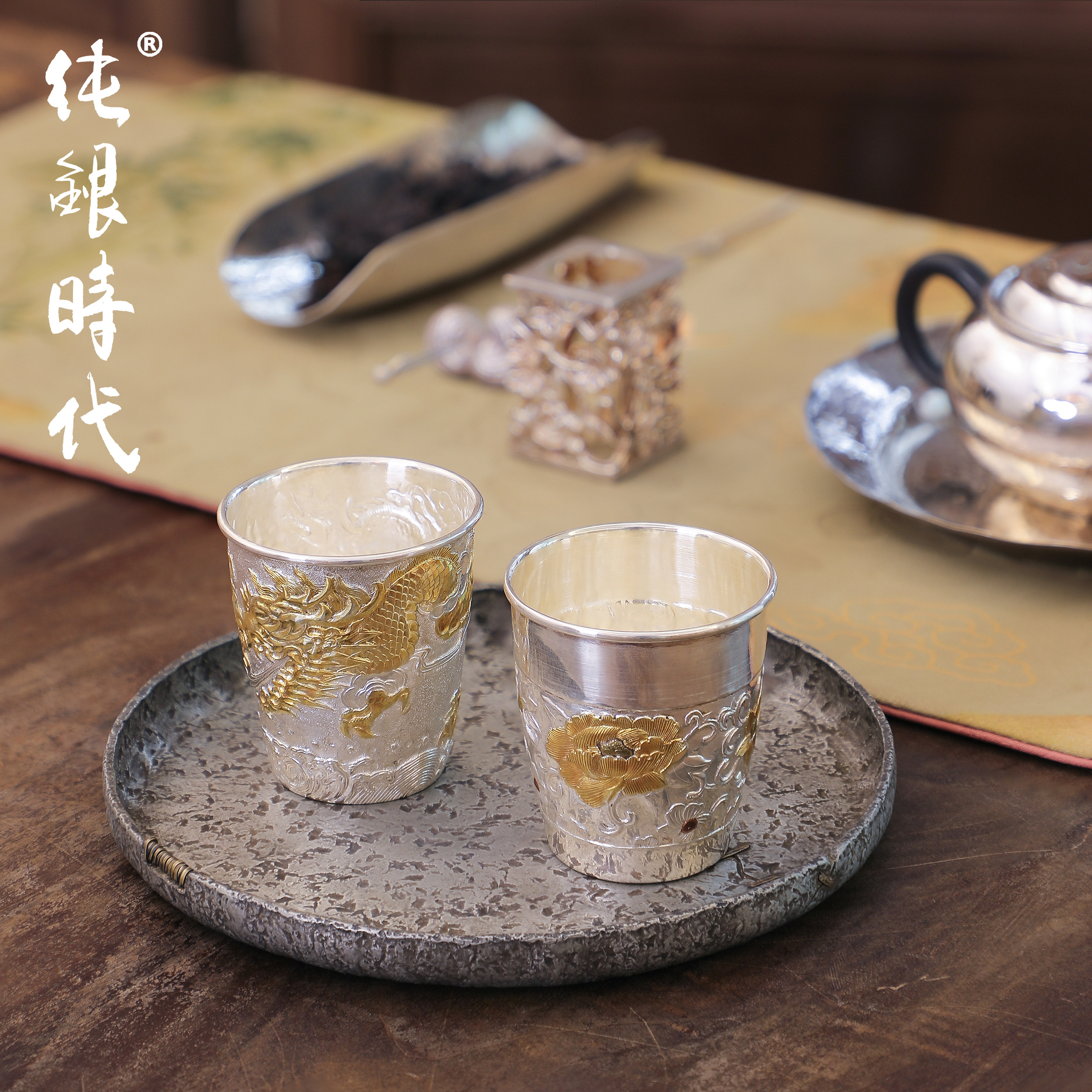 纯银时代 金龙牡丹茶杯张家松制纯银999主人杯喝茶个人专用杯送礼