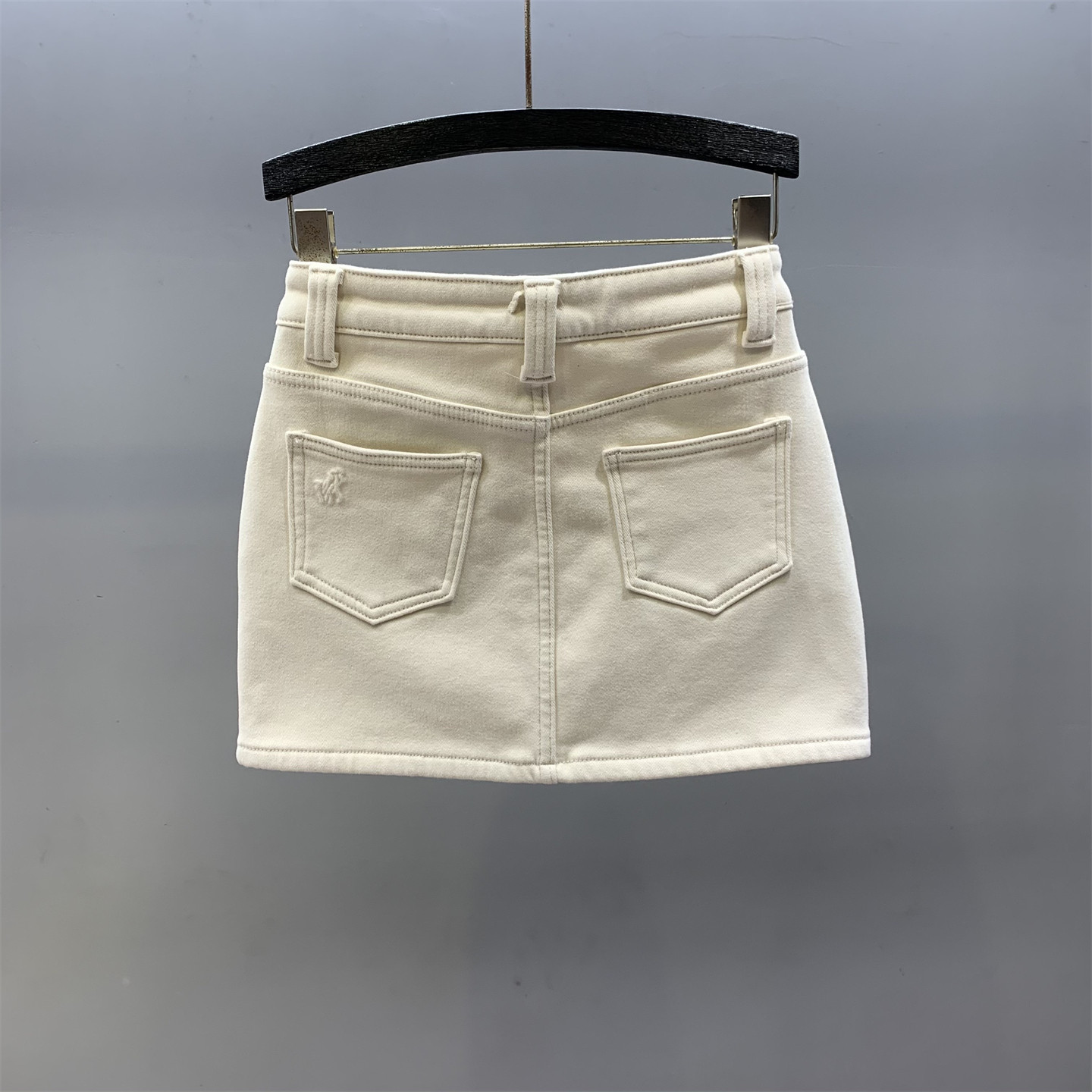 米白色加绒牛仔半身裙女2026秋冬新款修身显瘦防走光a字包臀短裙
