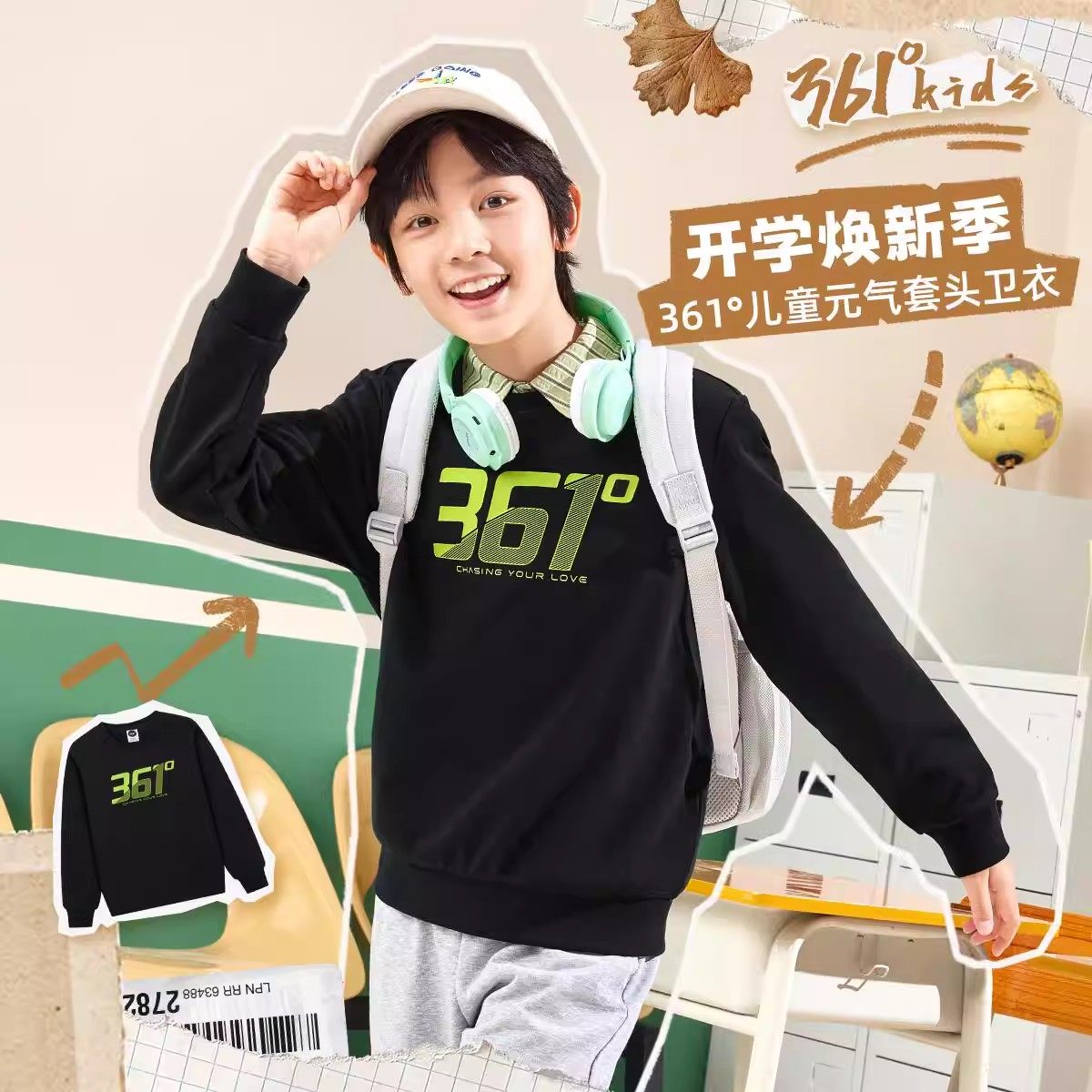 361°男女童圆领卫衣棉质新品2026春秋休闲衫印花套头衫N32611303