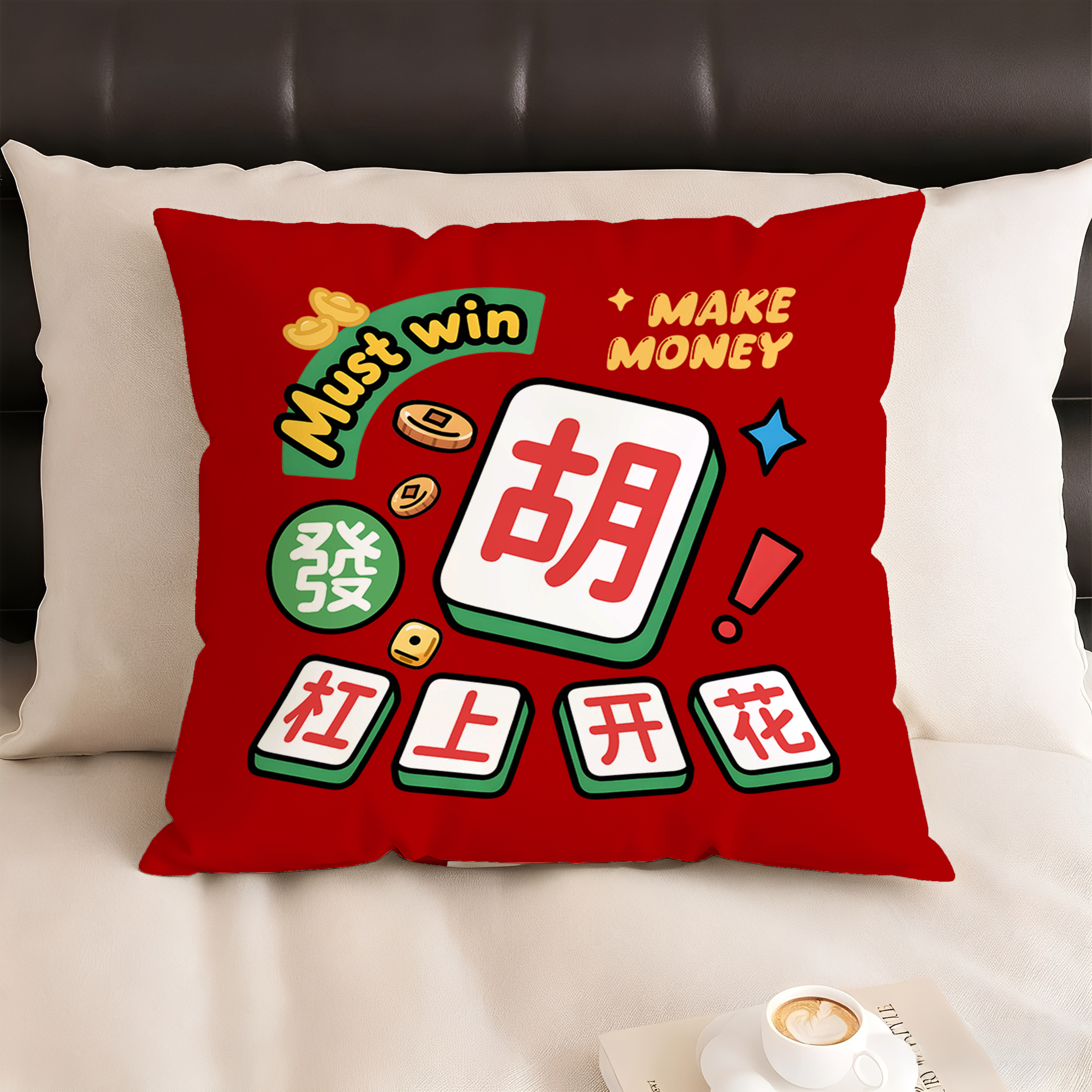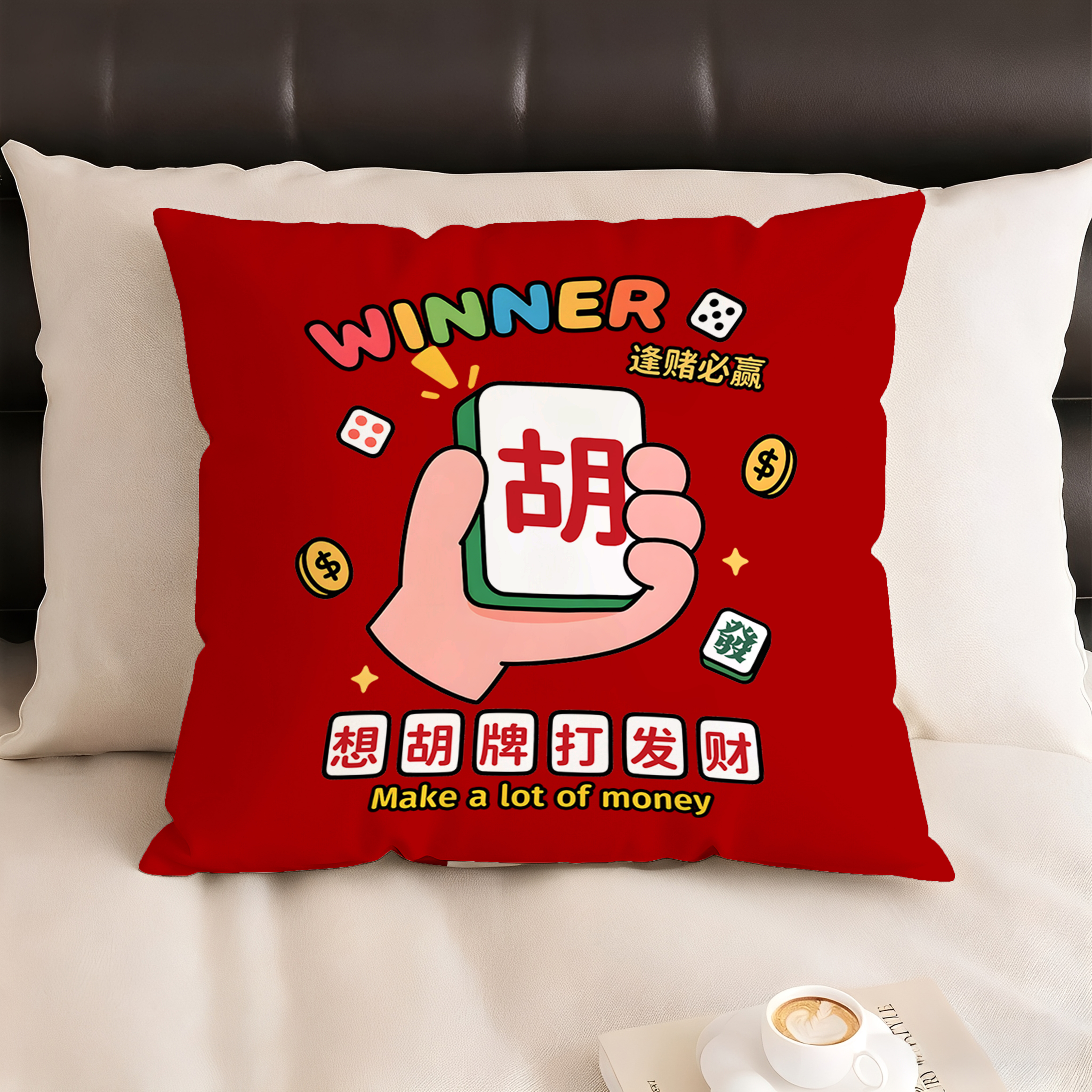 麻将抱枕创意发财靠垫雀圣靠枕国潮麻将馆腰靠沙发床头靠背可定制