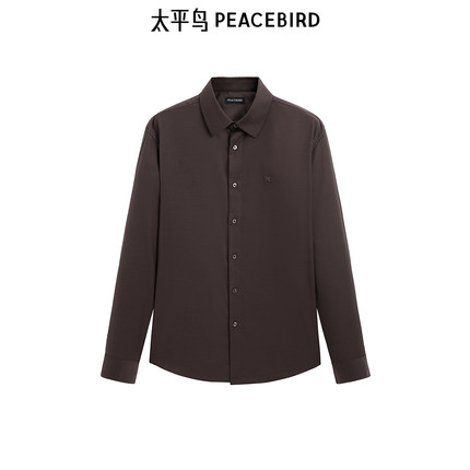太平鸟男装 休闲斯文衬衫秋季棕色简约时尚内搭衬衣青年
