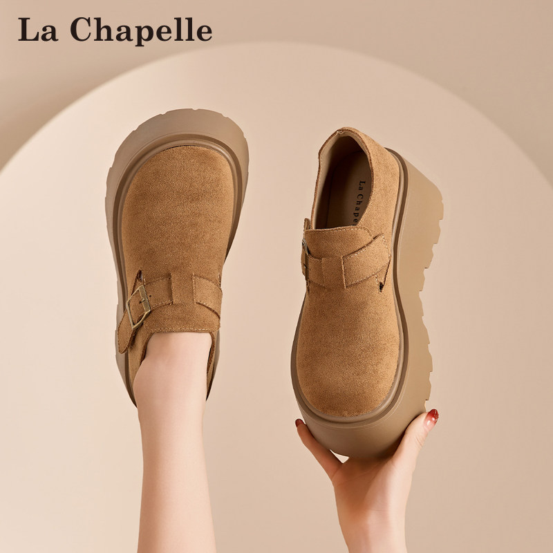 拉夏贝尔厚底勃肯鞋女2026新款春季爆款百搭增高全包单鞋乐福鞋女