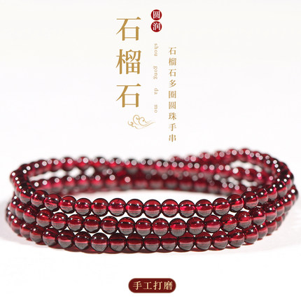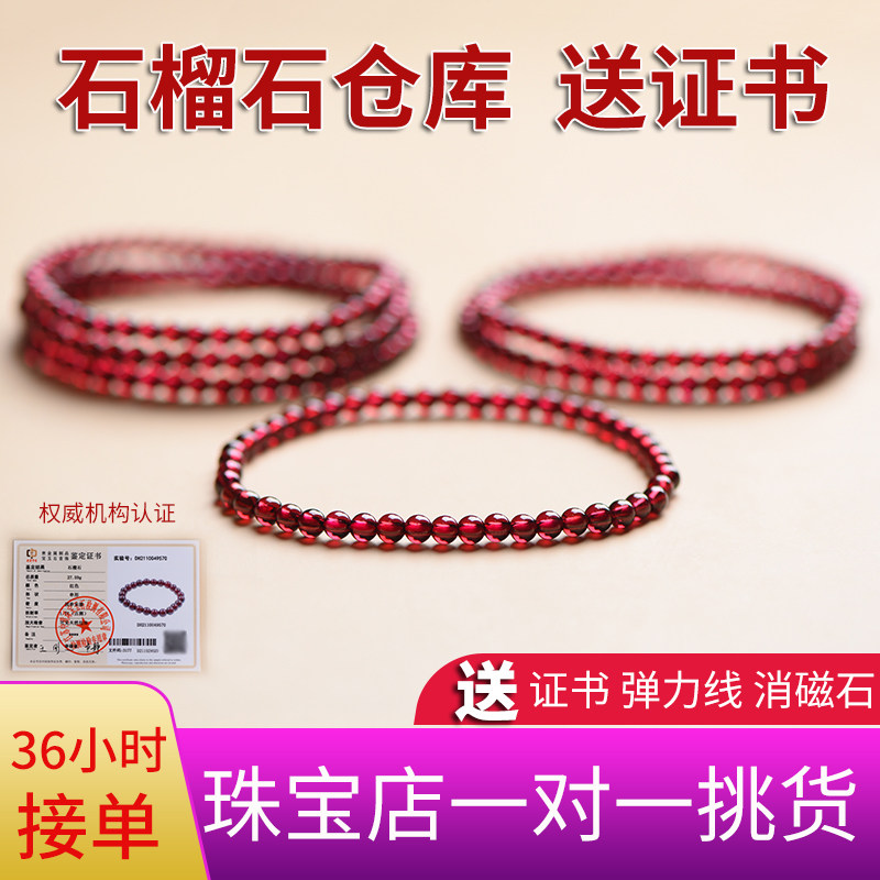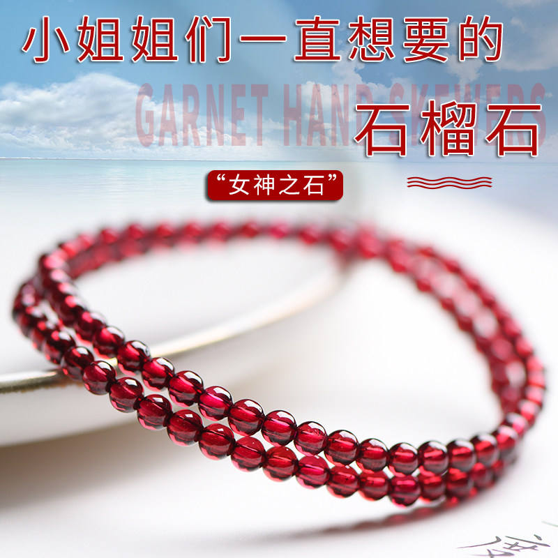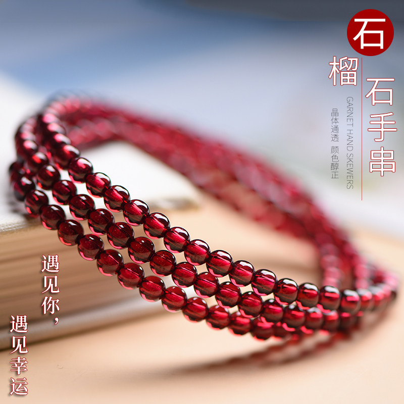 酒红石榴石手链女7A级水晶手串单圈多圈天然宝石级正品本命年礼物