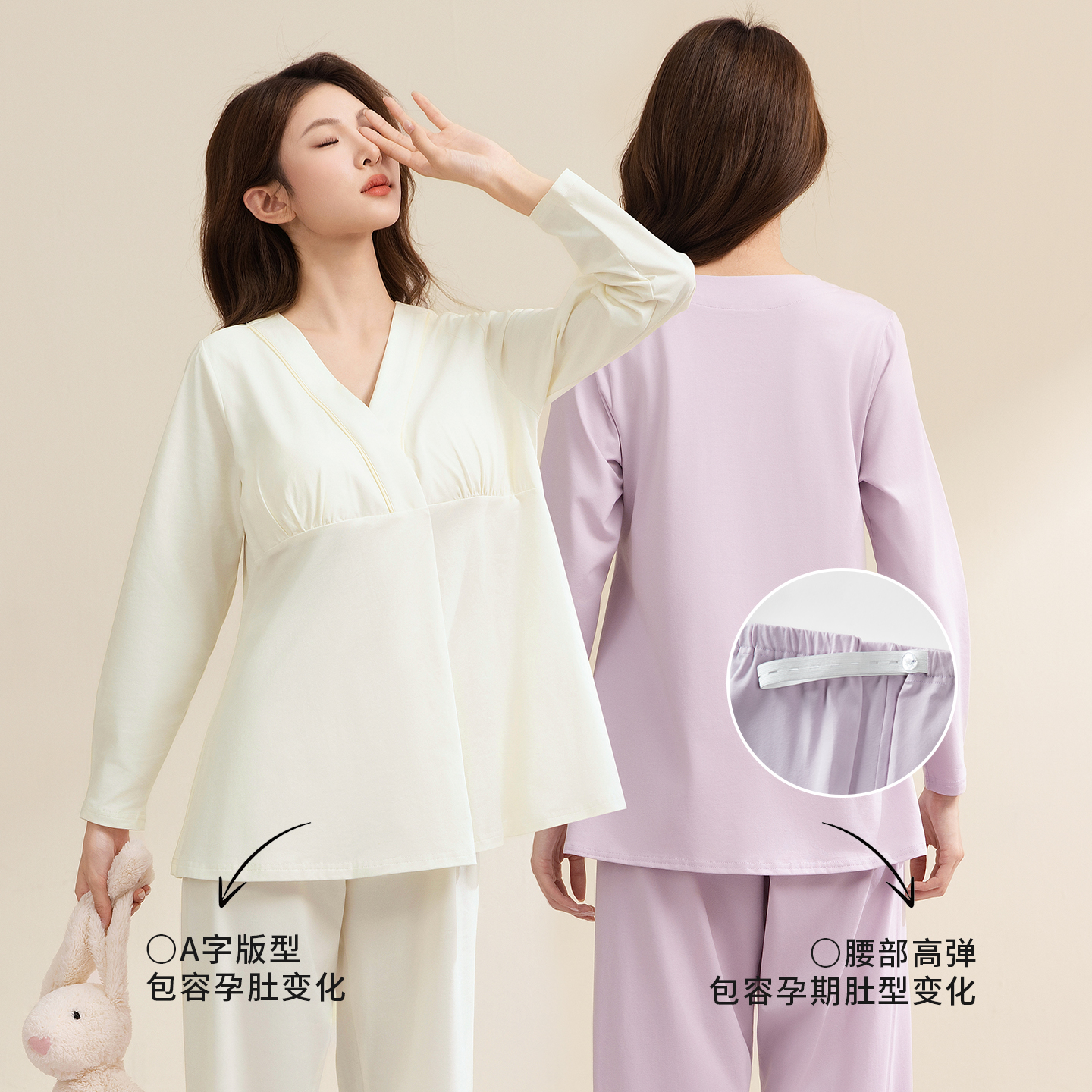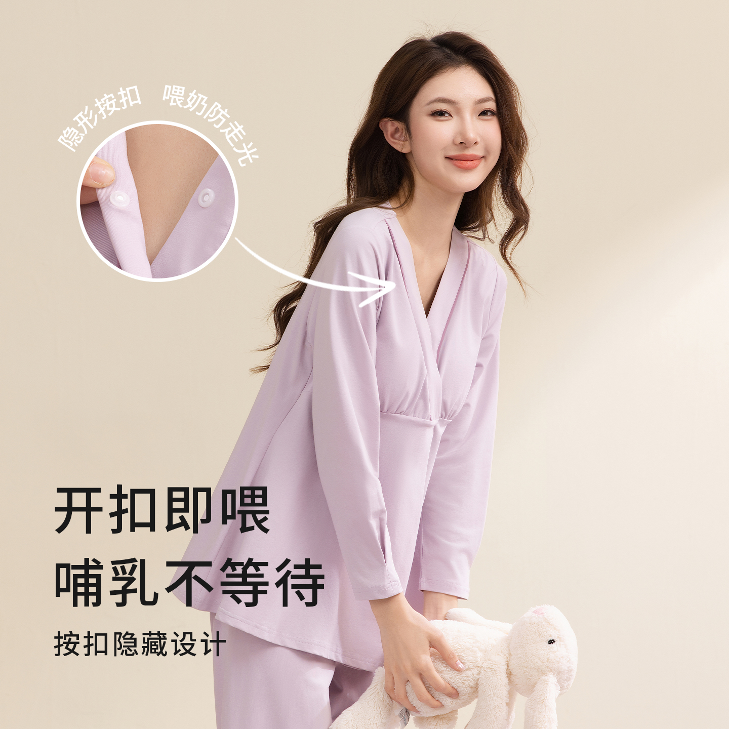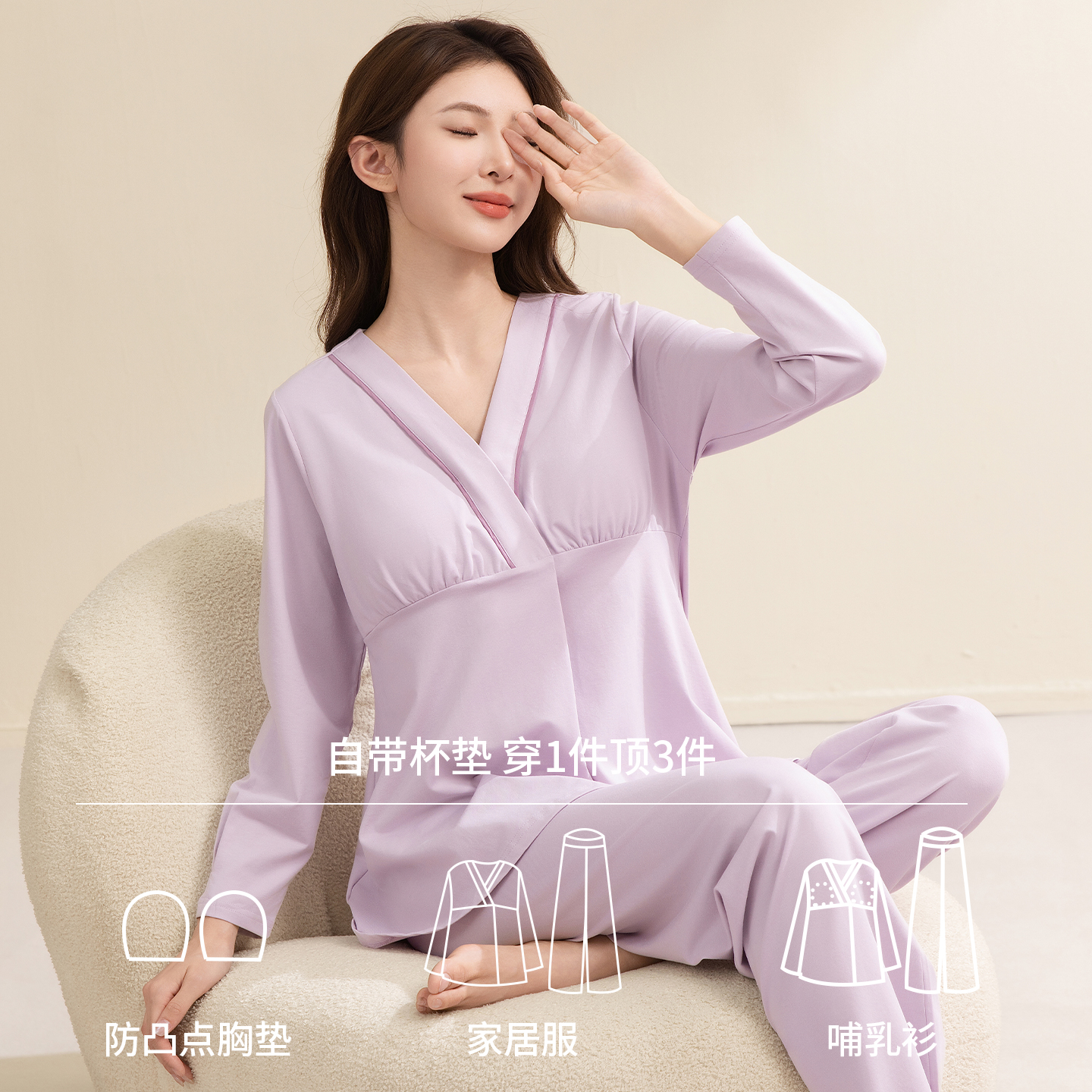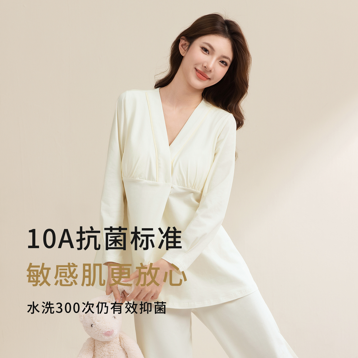 宫熏纯棉月子服哺乳秋冬孕妇带胸垫抗菌喂奶产后家居服睡衣套装