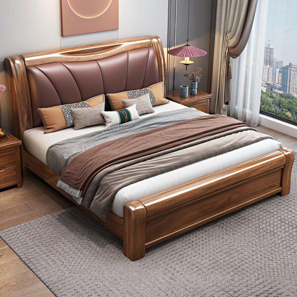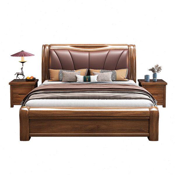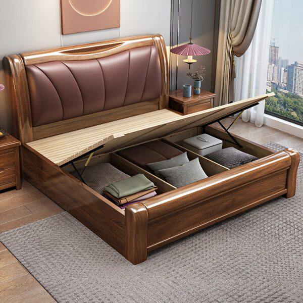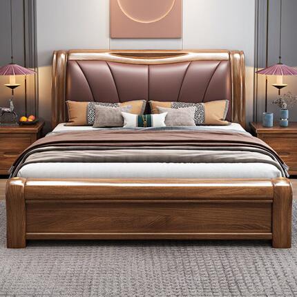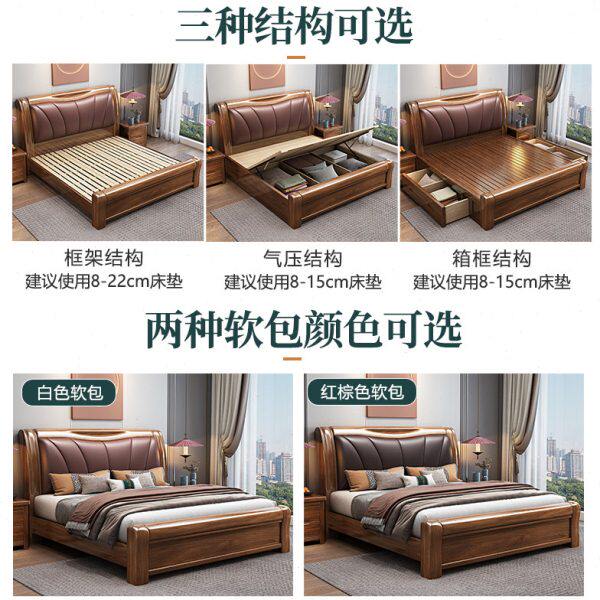 胡桃木实木床1.8米新中式双人大床现代简约主卧软包高箱储物婚床