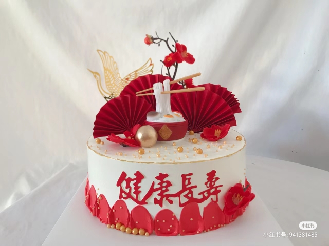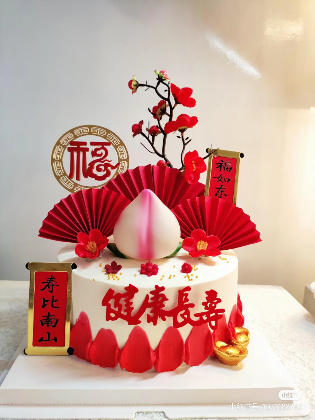 祝寿蛋糕爷爷奶奶摆件装饰寿比南山对联祥云仙鹤亚克力梅花小寿桃