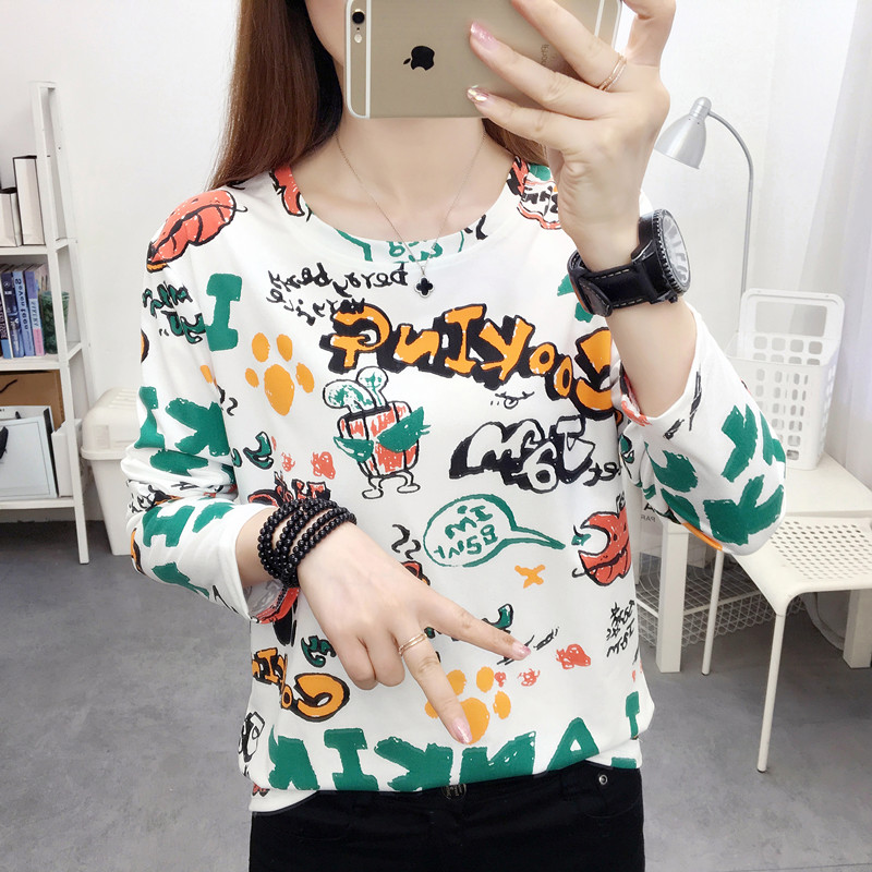 灰色扎染圆领长袖T恤女2025秋冬新款韩版百搭长袖打底衫女外搭潮
