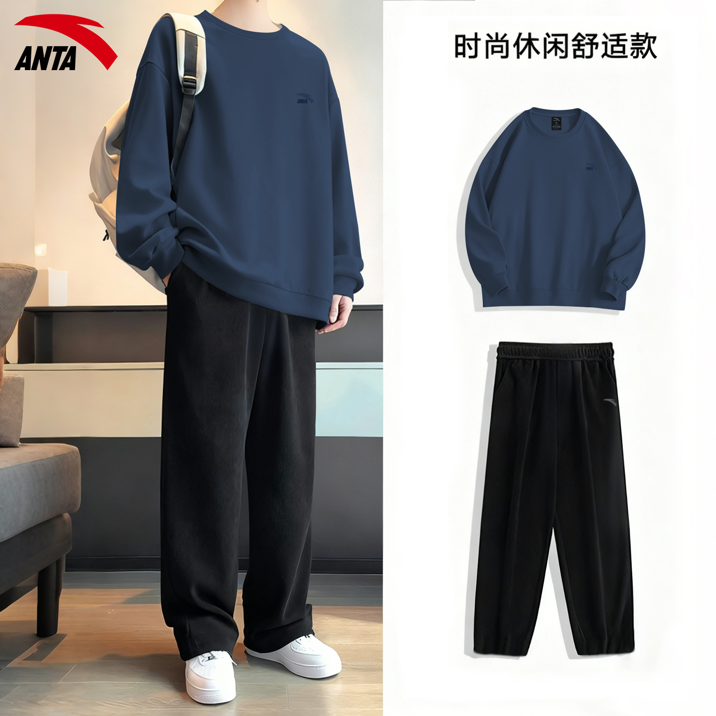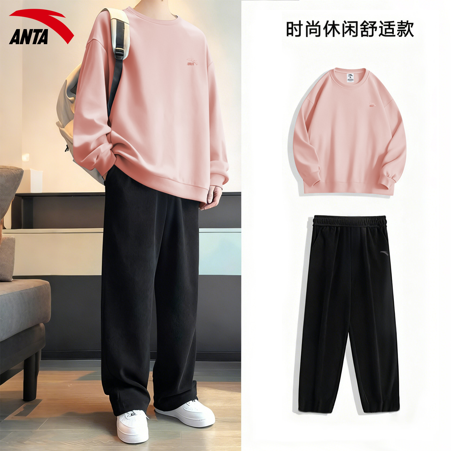 安踏运动套装男款秋冬2025新款青少年红色圆领时尚休闲长袖阔腿裤