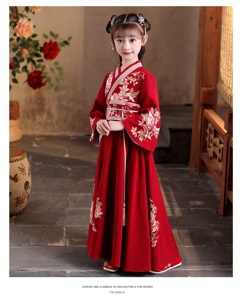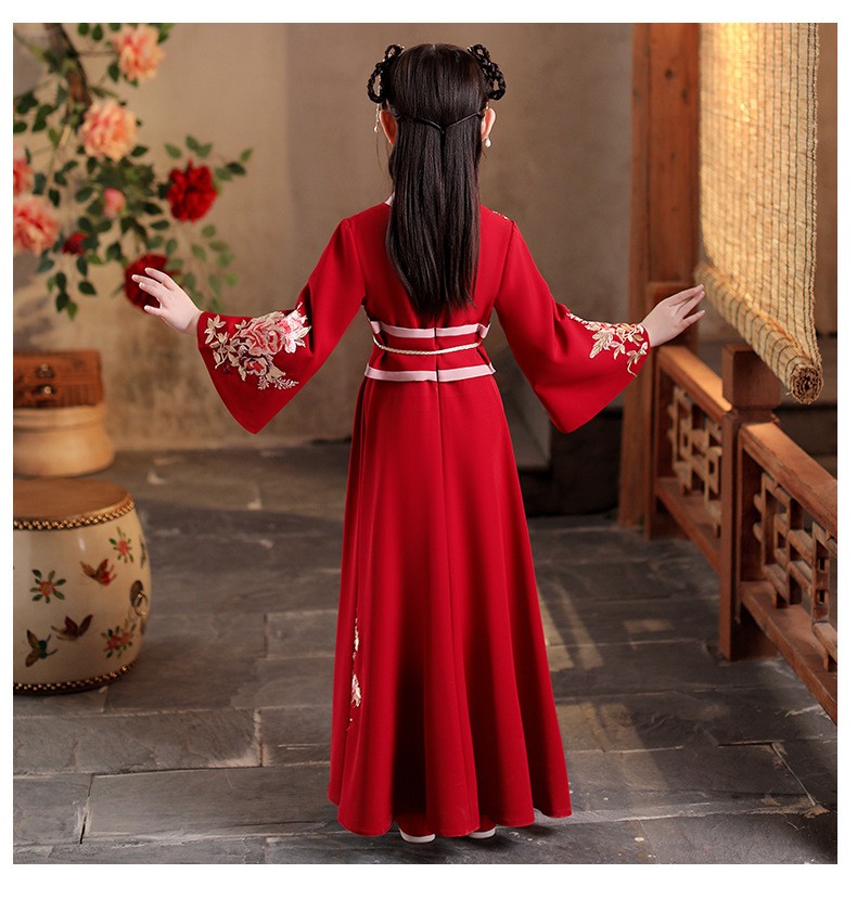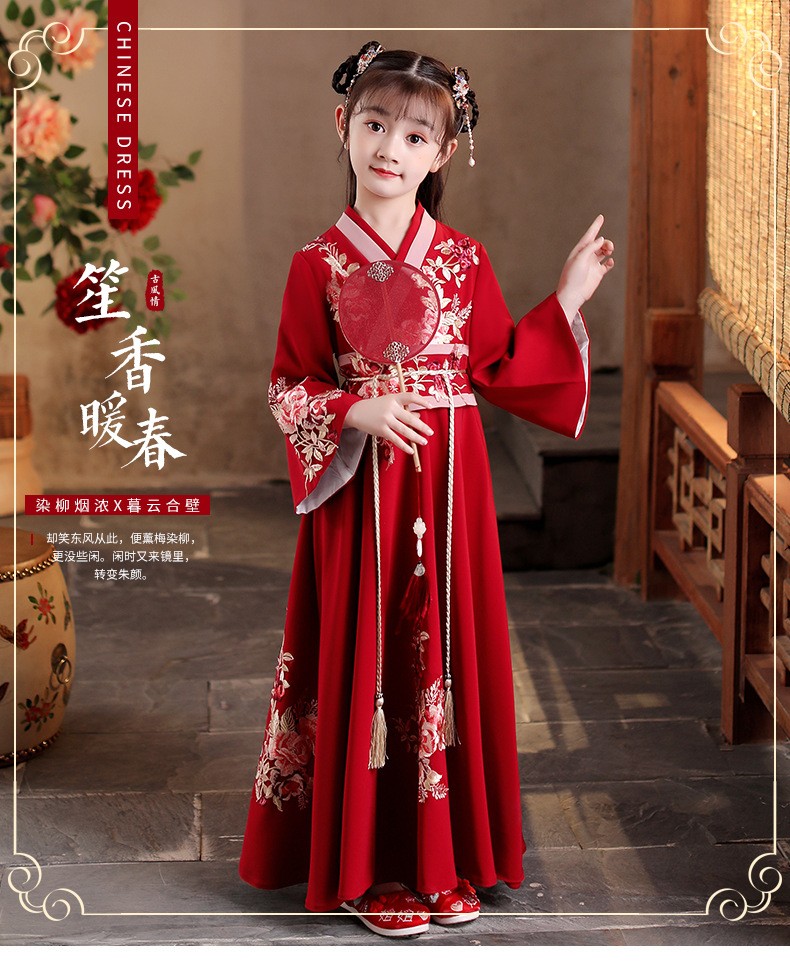 女童汉服2025新款儿童古装中国风唐装襦裙秋装超仙交领连衣裙红色