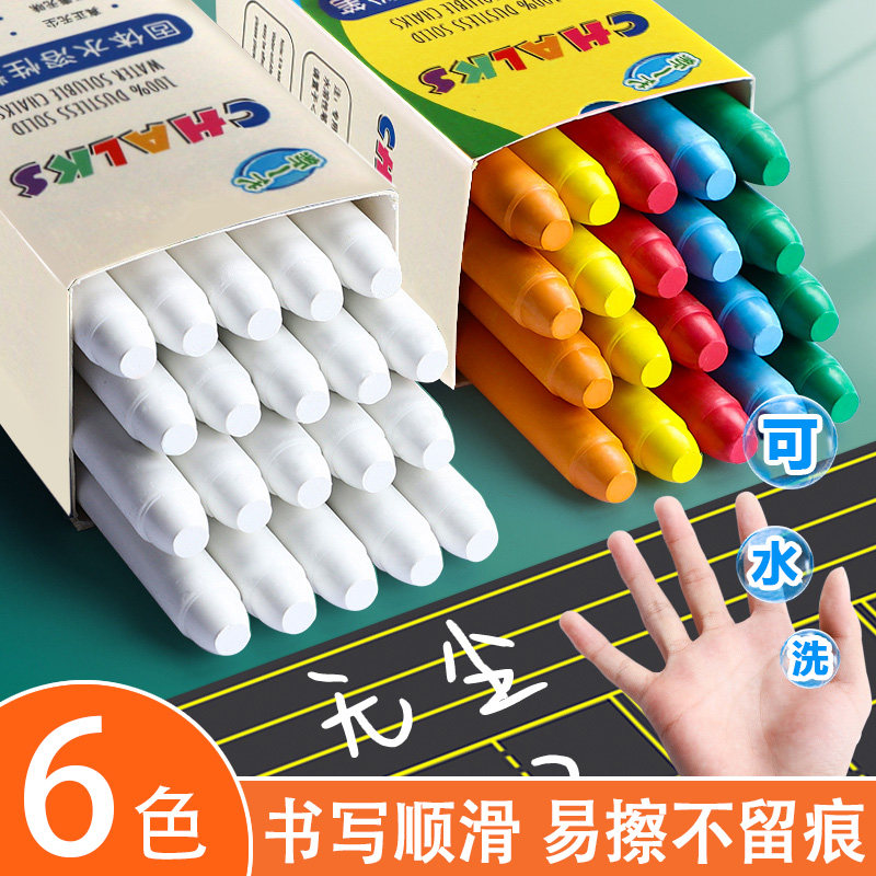 固体水溶性粉笔新简约粉笔无毒无尘水溶性儿童彩色易擦环保文教粉笔教师用20支无尘粉笔办公文具黑板