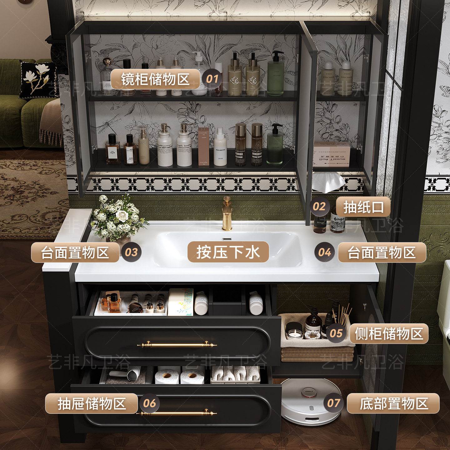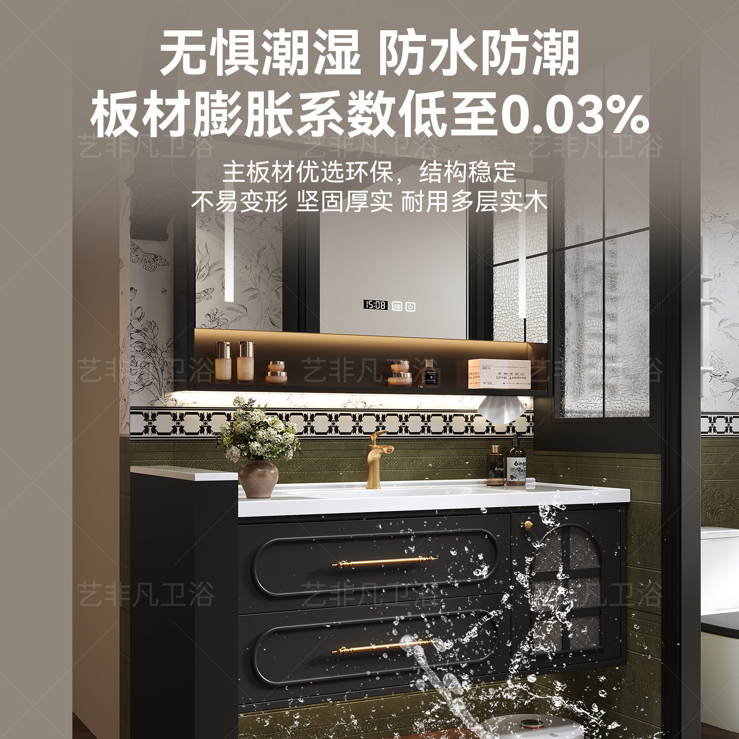 法式复古浴室柜组合卫生间陶瓷一体盆实木黑色洗漱台洗脸池洗手盆