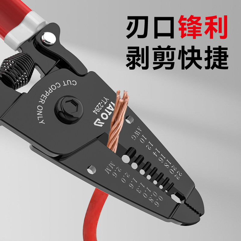 YATO剥线钳电工专用多功能剪线钳剥电线皮神器剥皮专用刀扒线钳子