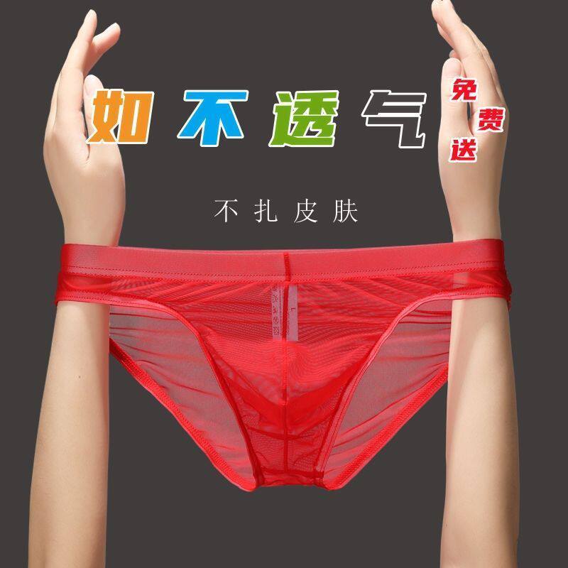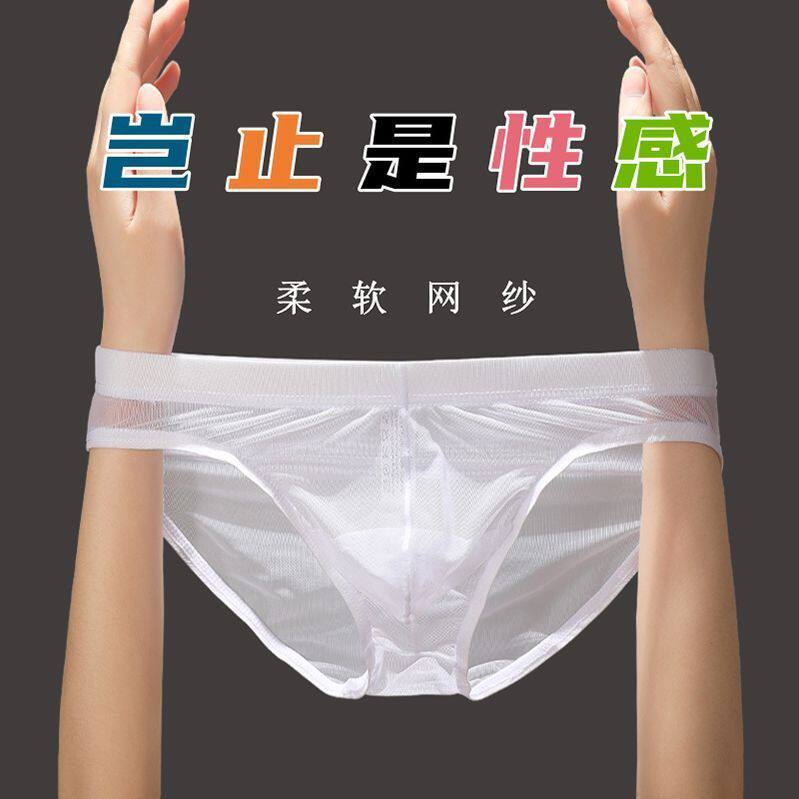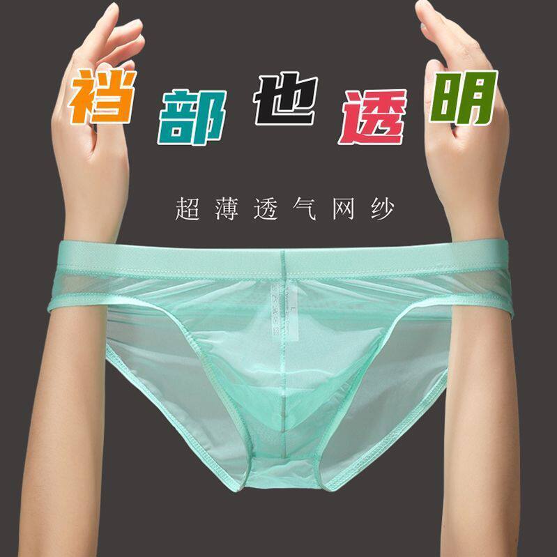 亲肤透明内裤男士三角裤冰丝性感裤衩夏季速干超薄网纱个性大空间