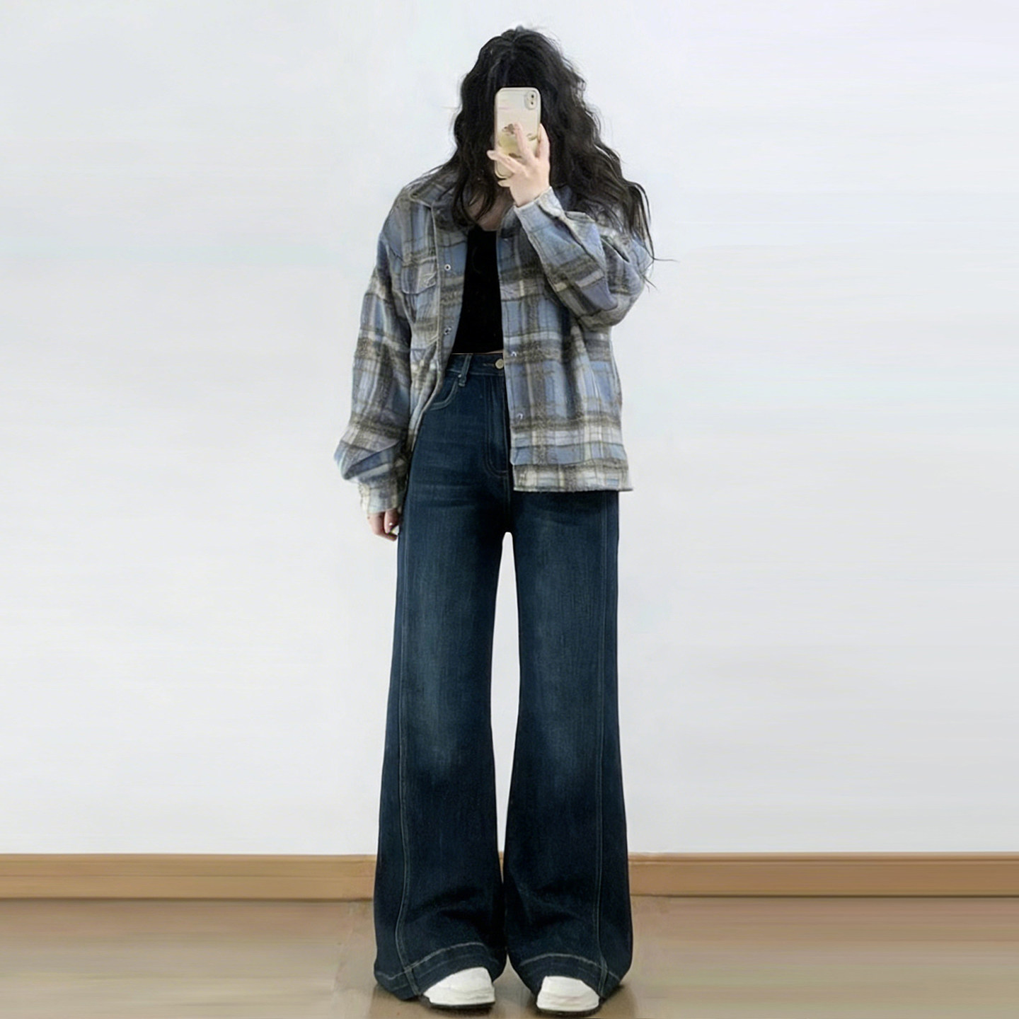 胖mm韩系复古弹力牛仔裤女特大码遮肉显瘦裤子宽松bf慵懒风阔腿裤
