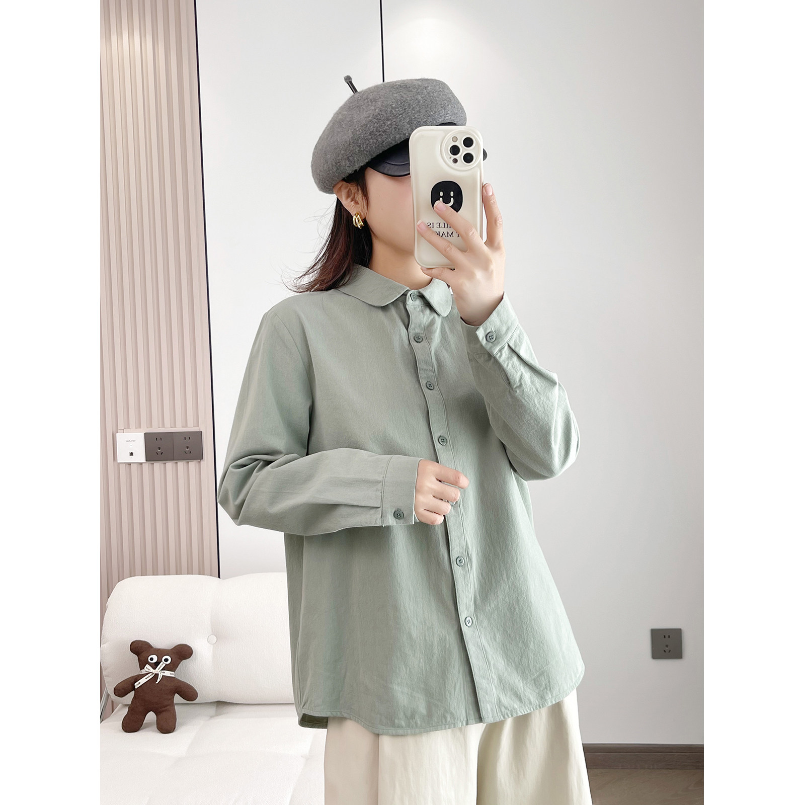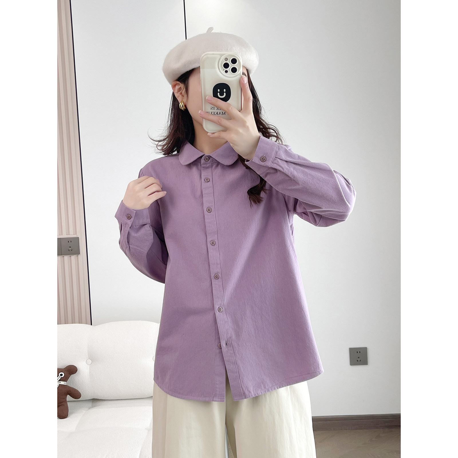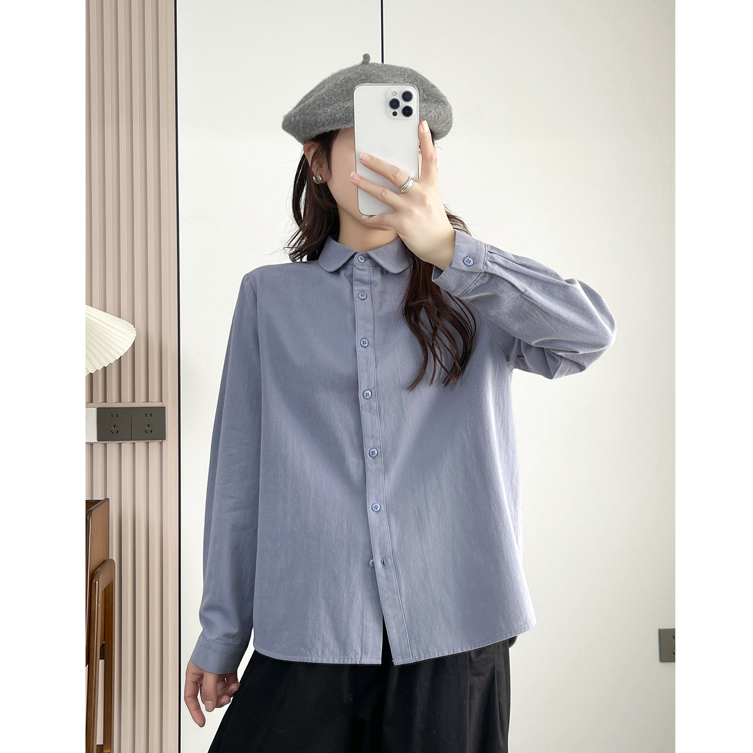 春季新款复古文艺纯棉长袖衬衫女宽松显瘦娃娃领上衣时尚休闲衬衣