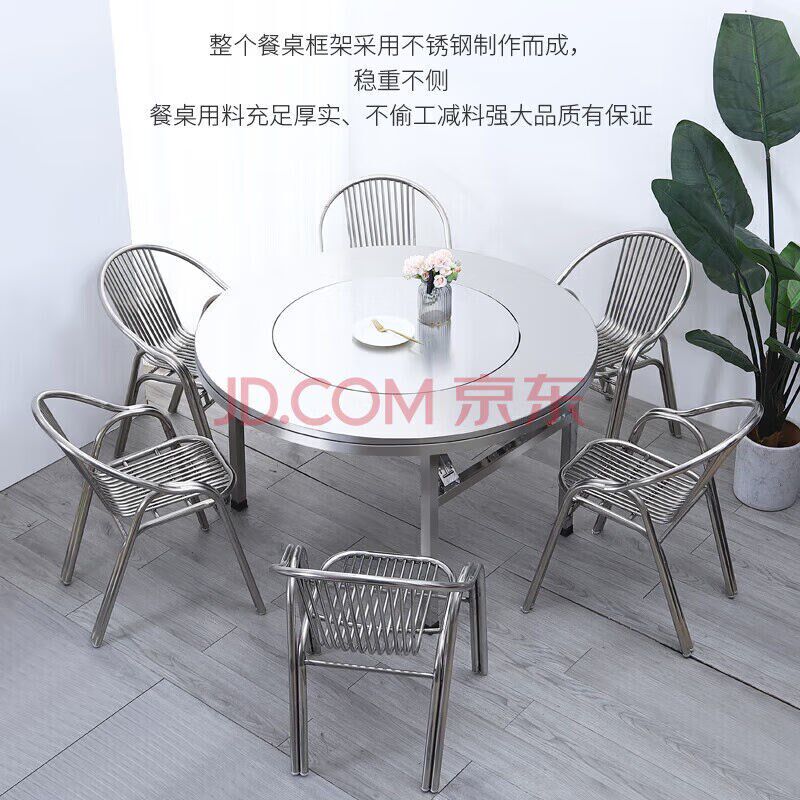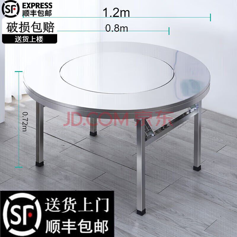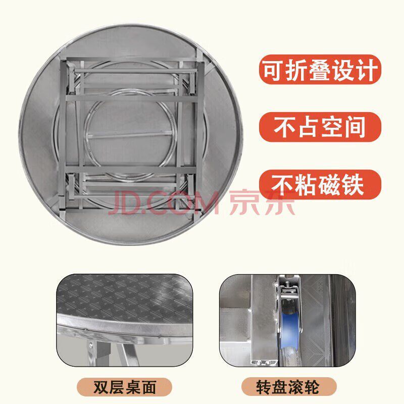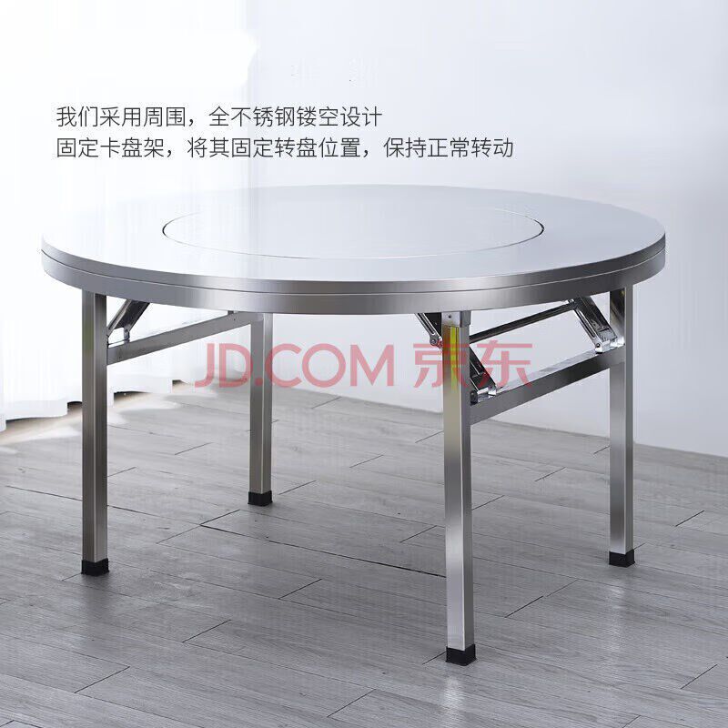 304特厚不锈钢内置转盘折叠餐桌大圆桌家用吃饭桌子酒席桌子圆形