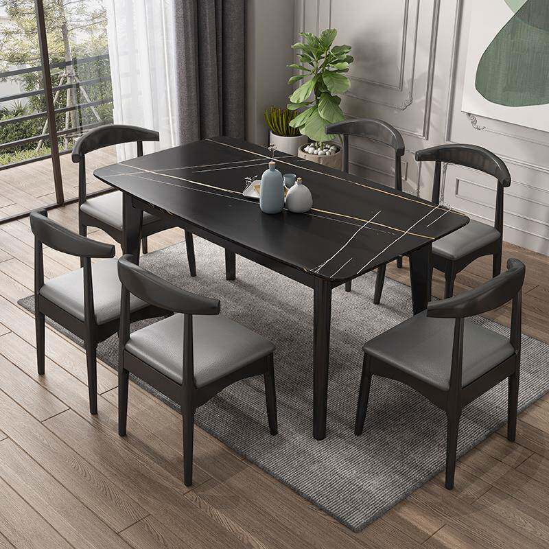 岩板餐桌家用方形北欧吃饭桌简约现代桌椅组合小户型餐厅成套家具