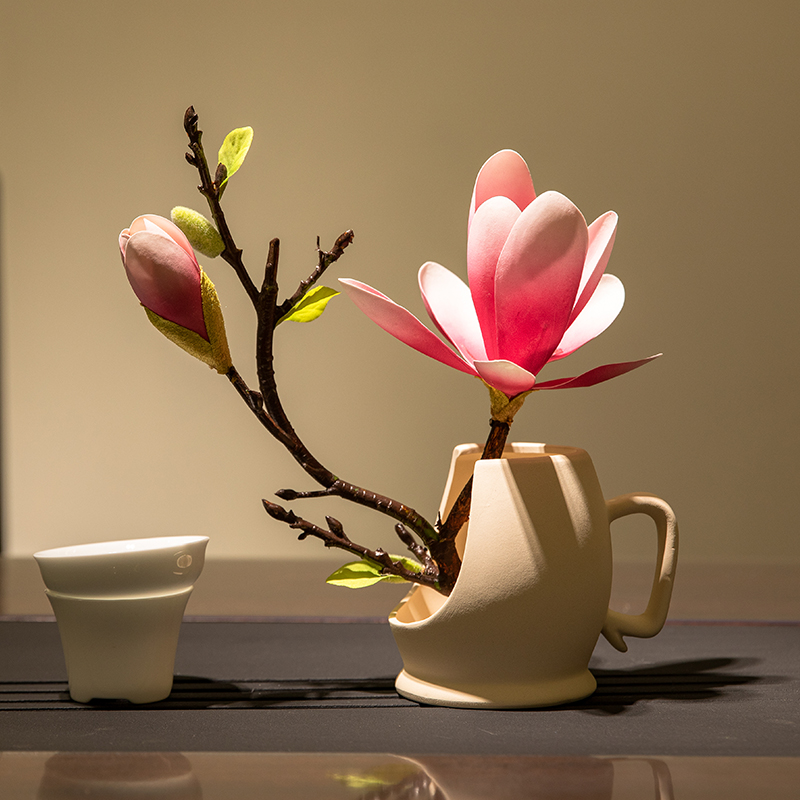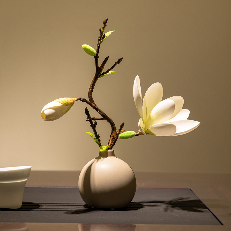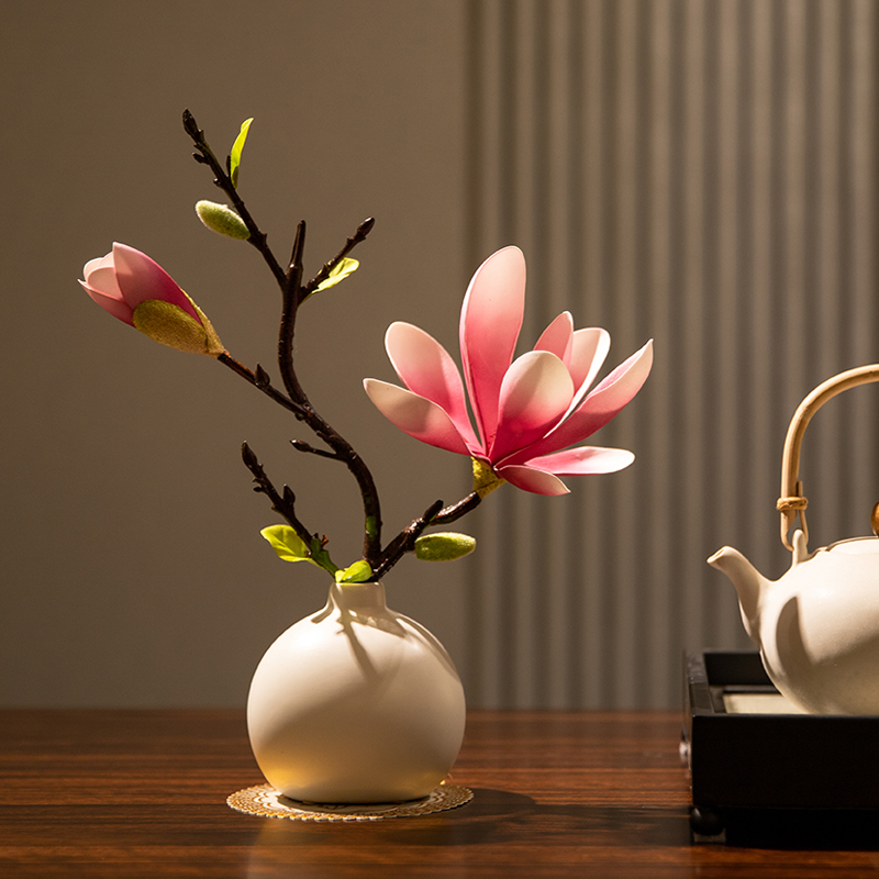 新中式仿真花玉兰花艺禅意花瓶套装餐桌茶几摆件家居装饰盆景格调