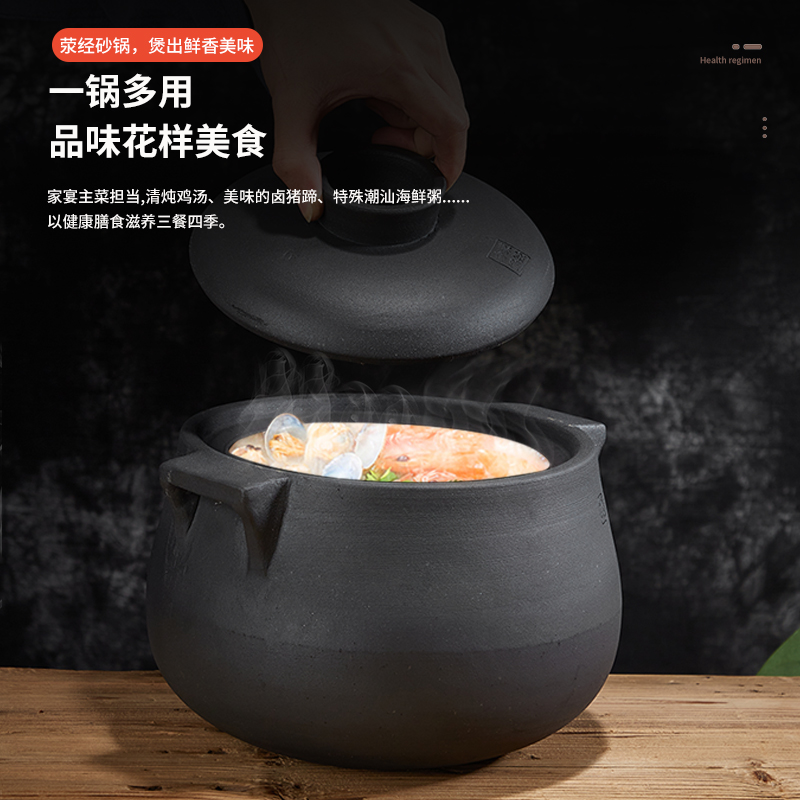 四川雅安荥经黑砂锅炖锅家用燃气煤气灶专用汤锅老式土砂锅煲汤锅
